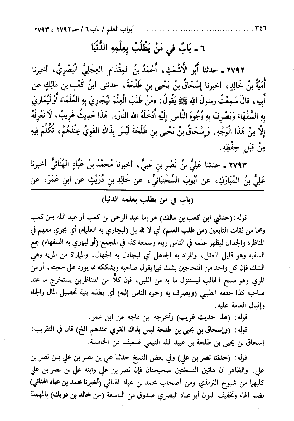 6 - (باب ما جاء في من يطلب بعلمه الدنيا)