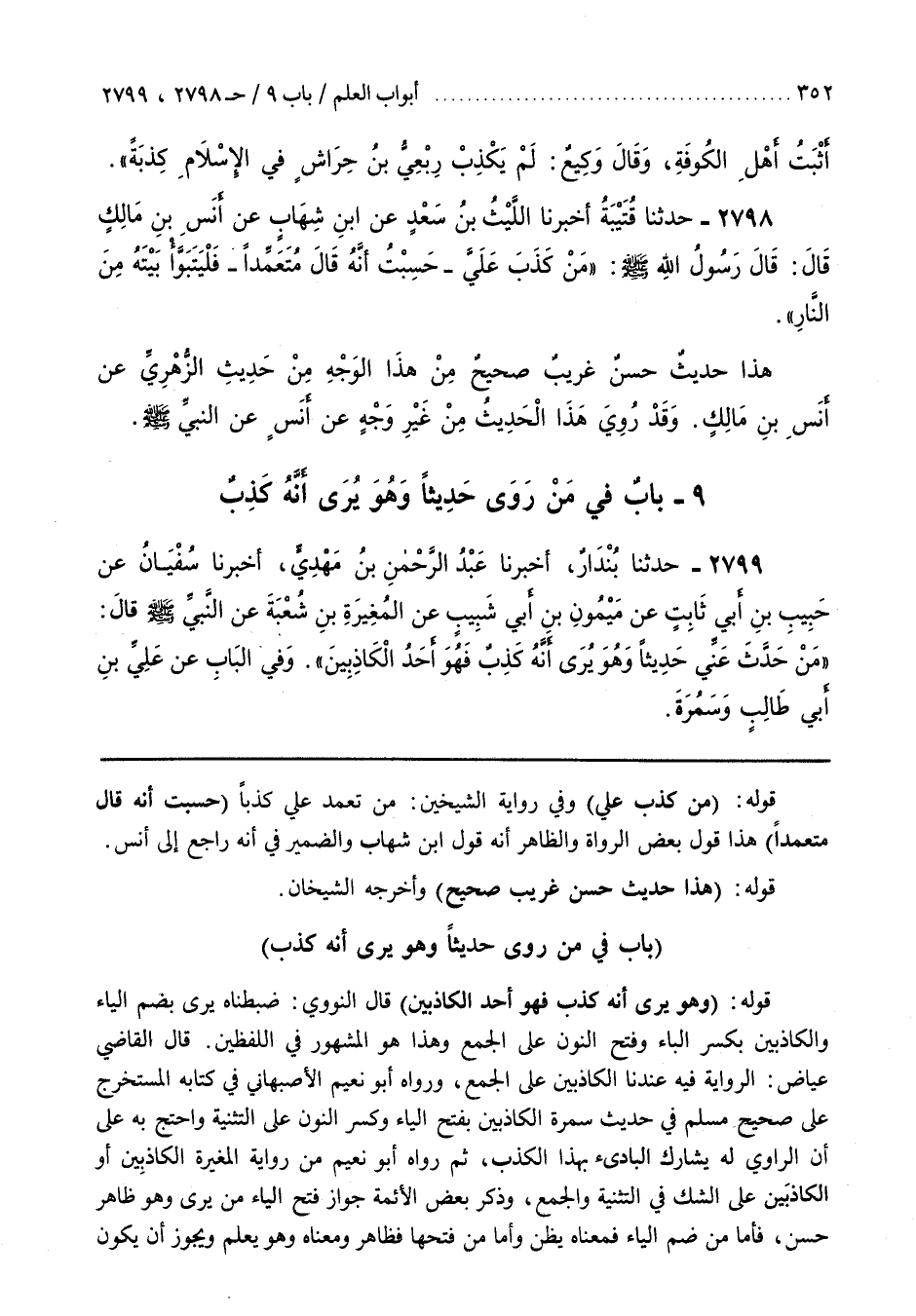 [2661] قَوْلُهُ (مَنْ كَذَبَ عَلَيَّ) وَفِي رِوَايَةِ الشَّيْخَيْنِ مَنْ تَعَمَّدَ عَلَيَّ كَذِبًا (حَسِبْتُ أَنَّهُ قَالَ مُتَعَمِّدًا) هَذَا قَوْلُ بَعْضِ الرُّوَاةِ وَالظَّاهِرُ أَنَّهُ قول بن شِهَابٍ وَالضَّمِيرُ فِي أَنَّهُ رَاجِعٌ إِلَى أَنَسٍ