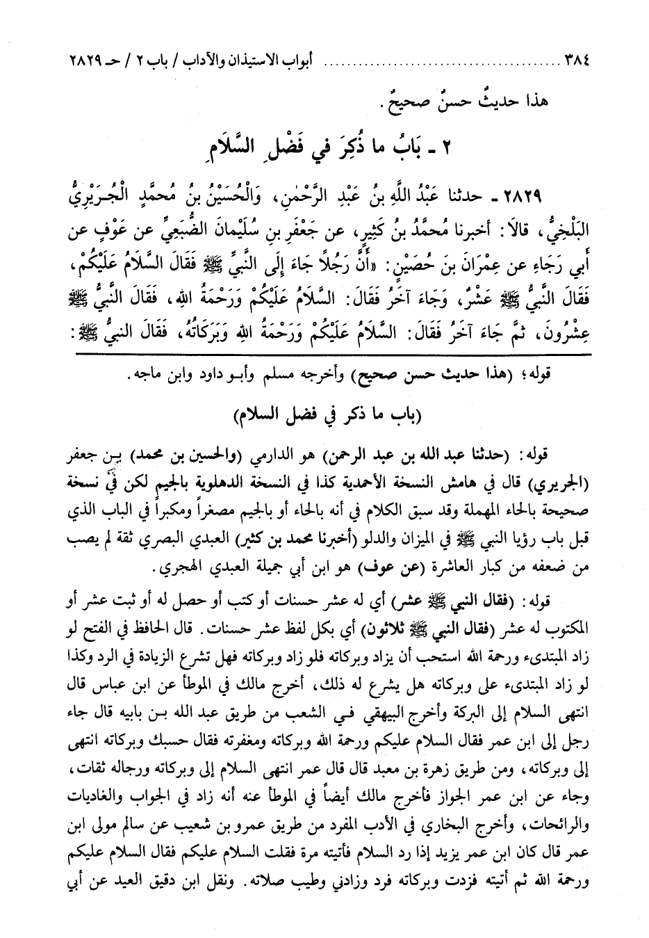 (بَاب مَا ذُكِرَ فِي فَضْلِ السَّلَامِ)
