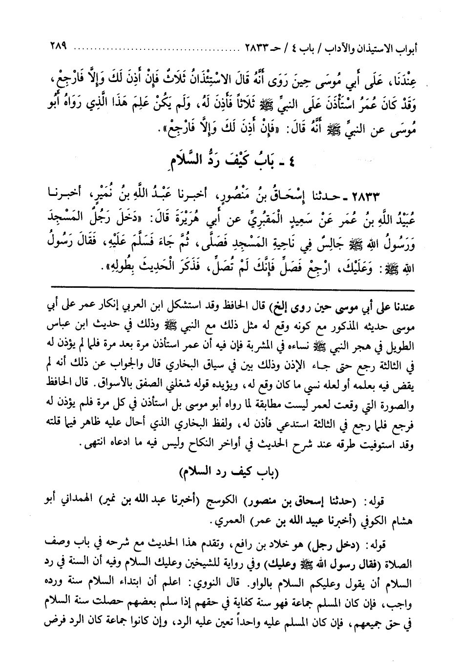قَالَ النَّوَوِيُّ اعْلَمْ أَنَّ ابْتِدَاءَ السَّلَامِ سُنَّةٌ وَرَدَّهُ وَاجِبٌ فَإِنْ كَانَ الْمُسَلِّمُ جَمَاعَةً فَهُوَ سُنَّةُ