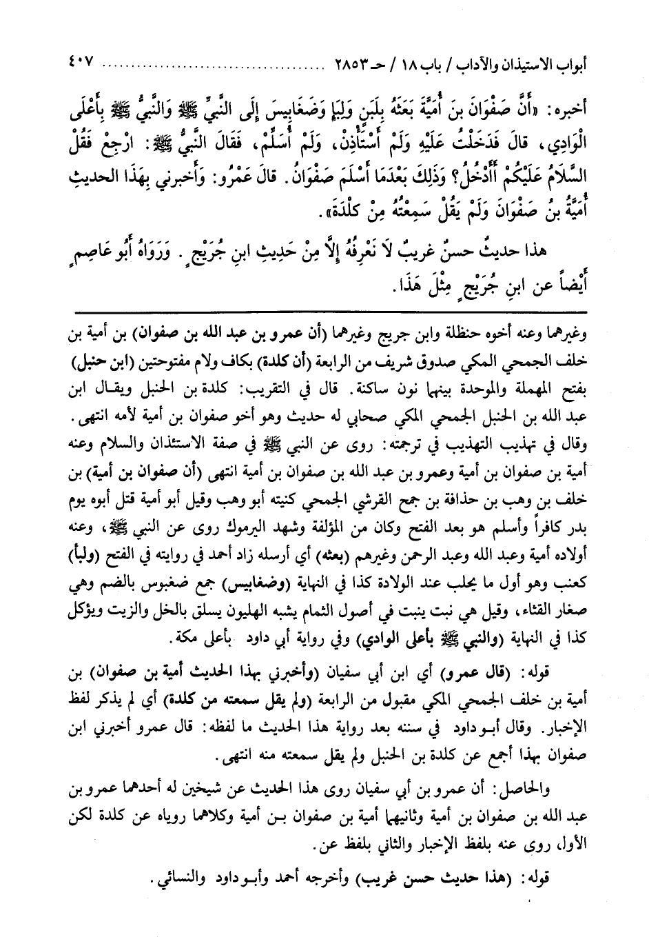 وَقَالَ أَبُو دَاوُدَ فِي سُنَنِهِ بَعْدَ رِوَايَةِ هَذَا الحديث ما لفظه قال عمرو وأخبرني بن صَفْوَانَ بِهَذَا أَجْمَعَ عَنْ كَلَدَةَ بْنِ الْحَنْبَلِ وَلَمْ يَقُلْ سَمِعْتُهُ مِنْهُ انْتَهَى