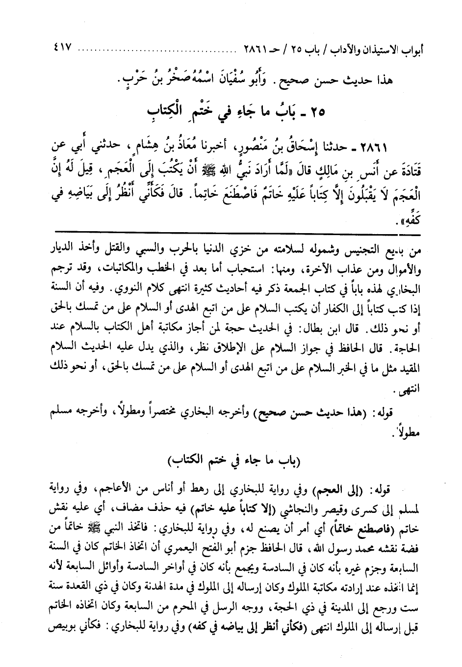 5 - (بَاب مَا جَاءَ فِي خَتْمِ الْكِتَابَ)