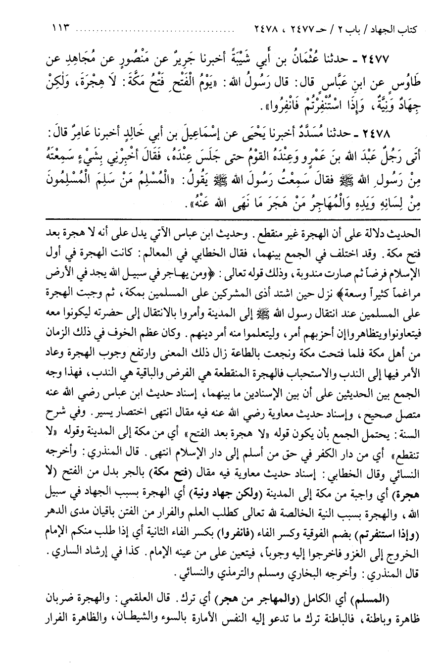 وحديث بن عَبَّاسٍ الْآتِي يَدُلُّ عَلَى أَنَّهُ لَا هِجْرَةَ بَعْدَ فَتْحِ مَكَّةَ