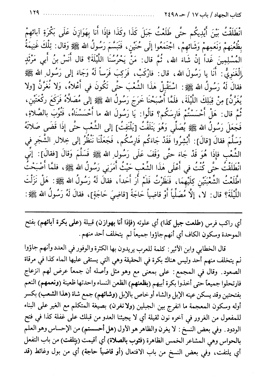 وَفِي بَعْضِ النُّسَخِ لَا يُغَرَّنَ وَالظَّاهِرُ هُوَ الْأَوَّلُ (هَلْ أَحْسَسْتُمْ) مِنَ الْإِحْسَاسِ وَهُوَ الْعِلْمُ بِالْحَوَاسِّ وَهِيَ الْمَشَاعِرُ الْخَمْسُ الظَّاهِرَةُ (فَثُوِّبَ بِالصَّلَاةِ) أَيْ أُقِيمَتْ (يَتَلَفَّتُ) مِنْ بَابِ التَّفَعُّلِ أَيْ يَلْتَفِتُ وَفِي بَعْضِ النُّسَخِ مِنْ بَابِ الِافْتِعَالِ (أَوْ قَاضِيًا حَاجَةً) أَيْ مِنْ بَوْلٍ وَغَائِطٍ (قَدْ