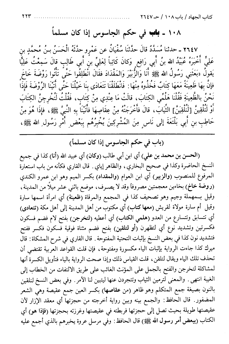 189 - (بَاب فِي حُكْمِ الْجَاسُوسِ إِذَا كَانَ مُسْلِمًا)
