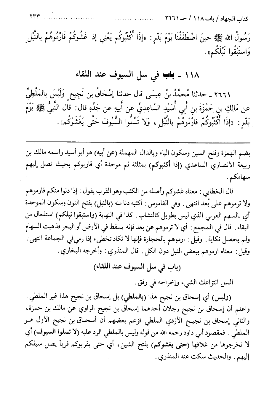 99 - (بَابٌ فِي سَلِّ السُّيُوفِ عِنْدَ اللِّقَاءِ)