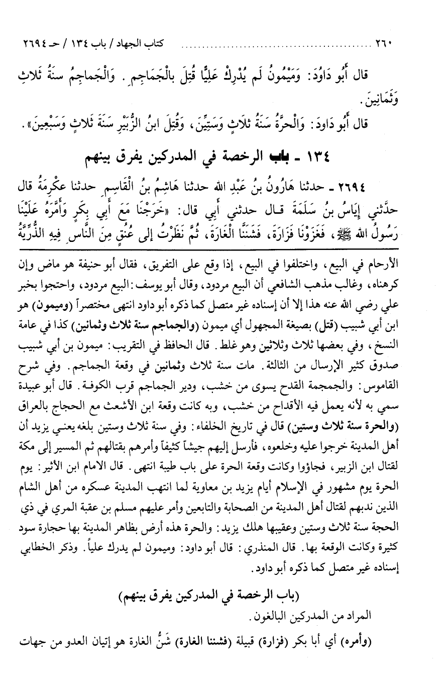 الْأَرْحَامِ فِي الْبَيْعِ وَاخْتَلَفُوا فِي الْبَيْعِ إِذَا وَقَعَ عَلَى التَّفْرِيقِ فَقَالَ أَبُو حَنِيفَةَ هُوَ مَاضٍ وَإِنْ كَرِهْنَاهُ وَغَالِبُ مَذْهَبِ الشَّافِعِيِّ أَنَّ الْبَيْعَ مَرْدُودٌ وَقَالَ أَبُو يُوسُفَ الْبَيْعُ مَرْدُودٌ وَاحْتَجُّوا بِخَبَرِ عَلِيٍّ رَضِيَ اللَّهُ عَنْهُ هَذَا إِلَّا أَنَّ إِسْنَادَهُ غَيْرُ مُتَّصِلٍ كَمَا ذَكَرَهُ أبو داود انتهى مختصرا (وميمون) هو بن أَبِي شُبَيْبٍ (قُتِلَ) بِصِيغَةِ الْمَجْهُولِ أَيْ مَيْمُونٌ (وَالْجَمَاجِمُ سَنَةَ ثَلَاثٍ وَثَمَانِينَ) كَذَا فِي عَامَّةِ النُّسَخِ وَفِي بَعْضِهَا ثَلَاثٌ وَثَلَاثِينَ وَهُوَ غَلَطٌ