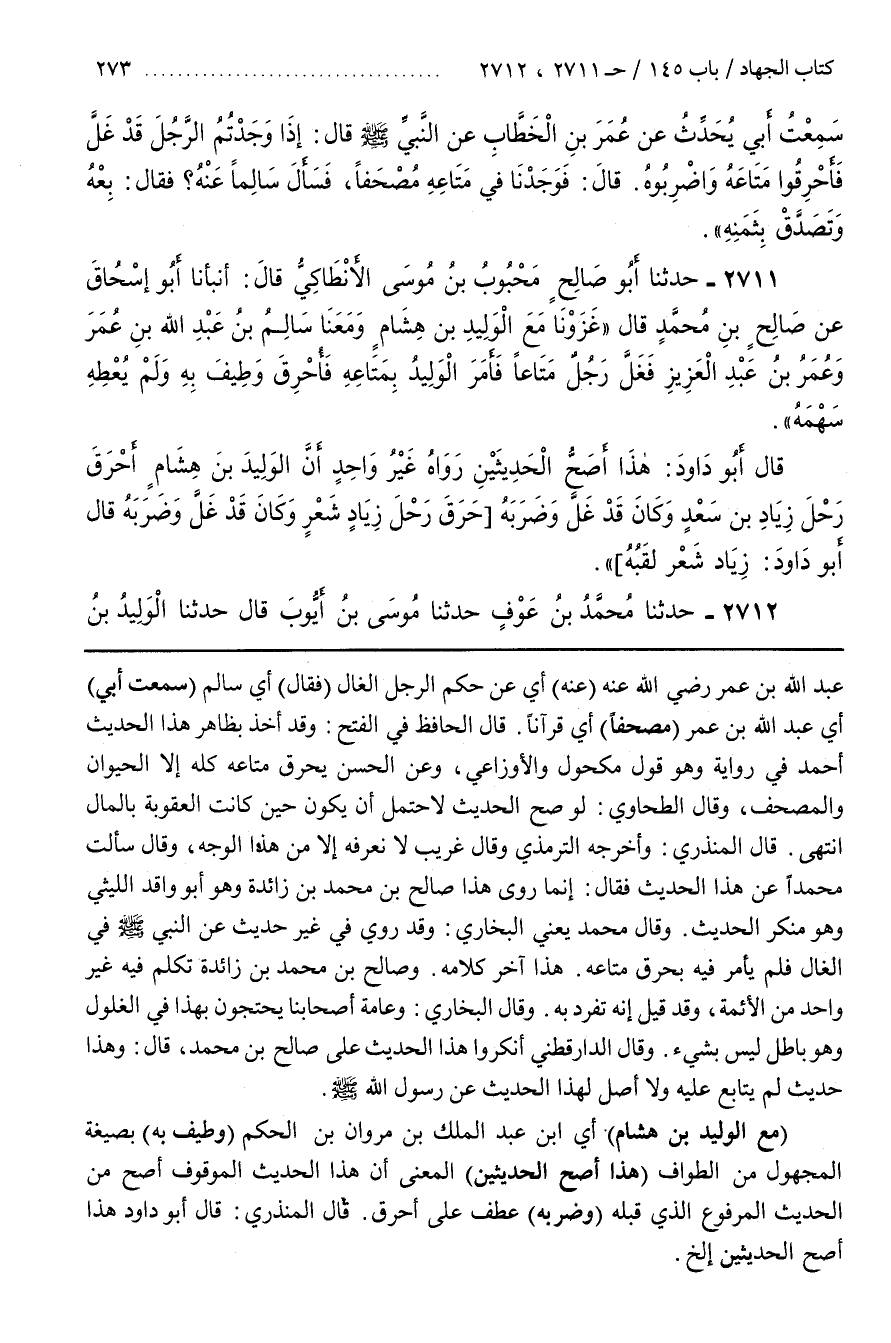 [2714] (مع الوليد بن هشام) أي بن عَبْدِ الْمَلِكِ بْنِ مَرْوَانَ بْنِ الْحَكَمِ (وَطِيفَ بِهِ) بِصِيغَةِ الْمَجْهُولِ مِنَ الطَّوَافِ (هَذَا أَصَحُّ الْحَدِيثَيْنِ) الْمَعْنَى أَنَّ هَذَا الْحَدِيثَ الْمَوْقُوفَ أَصَحُّ مِنَ الْحَدِيثِ الْمَرْفُوعِ الَّذِي قَبْلَهُ (وَضَرَبَهُ) عَطْفٌ عَلَى أَحْرَقَ
