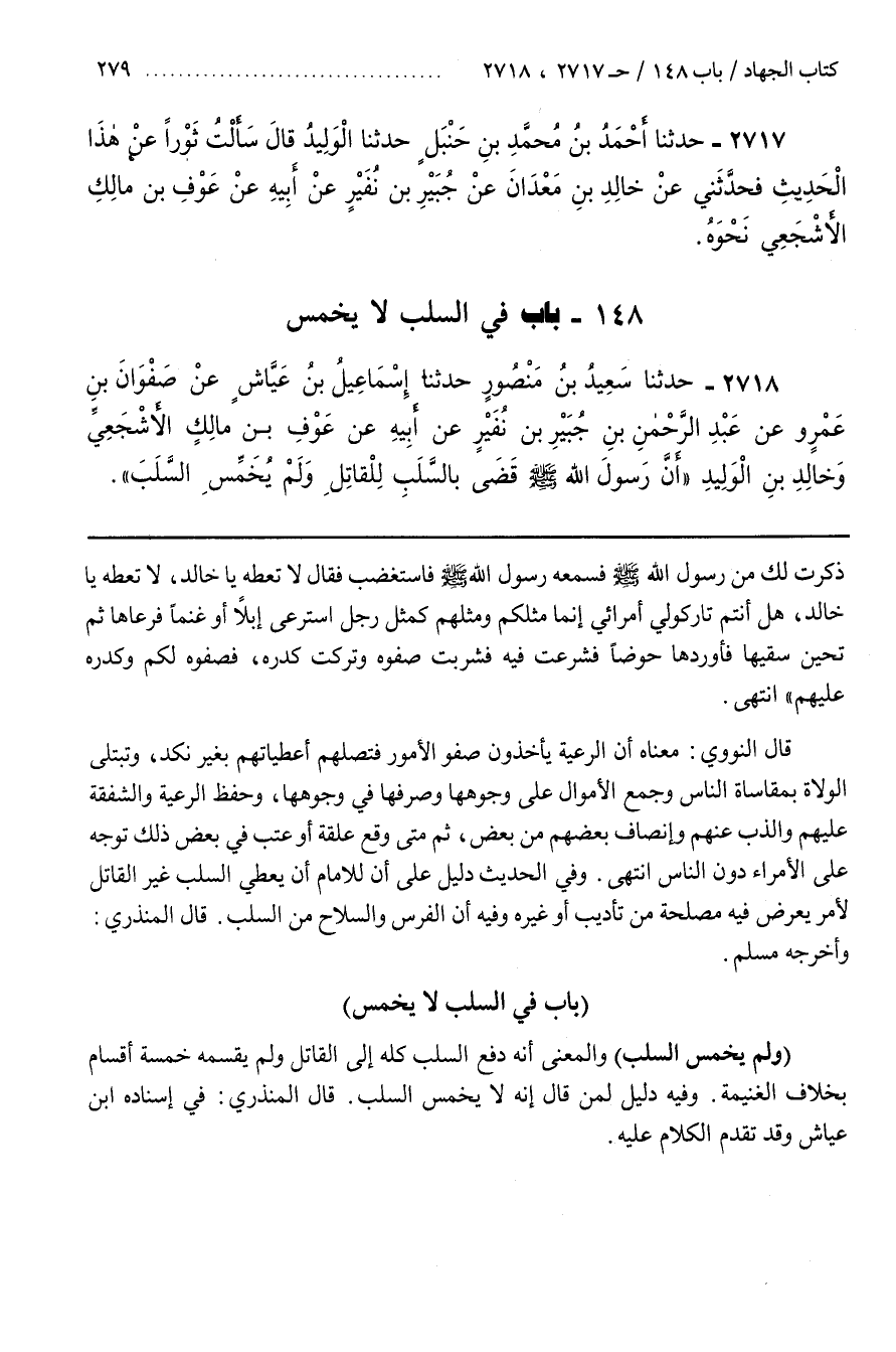 ([2721] بَاب فِي السَّلَبِ لَا يُخَمَّسُ)