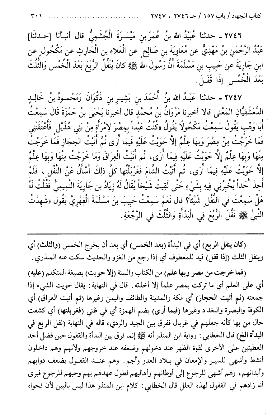 قَالَ فِي النِّهَايَةِ يُقَالُ حَوَيْتُ الشَّيْءَ إِذَا جَمَعْتُهُ (ثُمَّ أَتَيْتُ الْحِجَازَ) أَيْ مَكَّةَ وَالْمَدِينَةَ وَالطَّائِفَ وَالْيَمَنَ وَغَيْرَهَا (ثُمَّ أَتَيْتُ الْعِرَاقَ) أَيَ الْكُوفَةَ وَالْبَصْرَةَ وَالْبَغْدَادَ وَغَيْرَهَا (فِيمَا أُرَى) بِضَمِّ الْهَمْزَةِ أَيْ فِي ظَنِّي (فَغَرْبَلْتُهَا) أَيْ كَشَفْتُ حَالَ مَنْ بِهَا كَأَنَّهُ جَعَلَهُمْ فِي غِرْبَالٍ فَفَرَّقَ بَيْنَ الْجَيِّدِ وَالرَّدِيءِ قَالَهُ فِي النِّهَايَةِ (نَفَّلَ الرُّبْعَ فِي الْبَدْأَةِ إِلَخْ) قَالَ الْخَطَّابِيُّ رِوَايَةً عَنِ بن الْمُنْذِرِ إِنَّهُ صَلَّى اللَّهُ عَلَيْهِ وَسَلَّمَ إِنَّمَا فَرَّقَ بَيْنَ الْبَدْأَةِ وَالْقُفُولِ حِينَ فَضَّلَ أَحَدَ الْعَطِيَّتَيْنِ عَلَى الْأُخْرَى لِقُوَّةِ الظَّهْرِ عِنْدَ دُخُولِهِمْ وَضَعْفِهِ عِنْدَ خُرُوجِهِمْ وَلِأَنَّهُمْ وَهُمْ دَاخِلُونَ أَنْشَطُ وَأَشْهَى لِلسَّيْرِ وَالْإِمْعَانِ فِي بِلَادِ الْعَدُوِّ وَأَجَمُّ