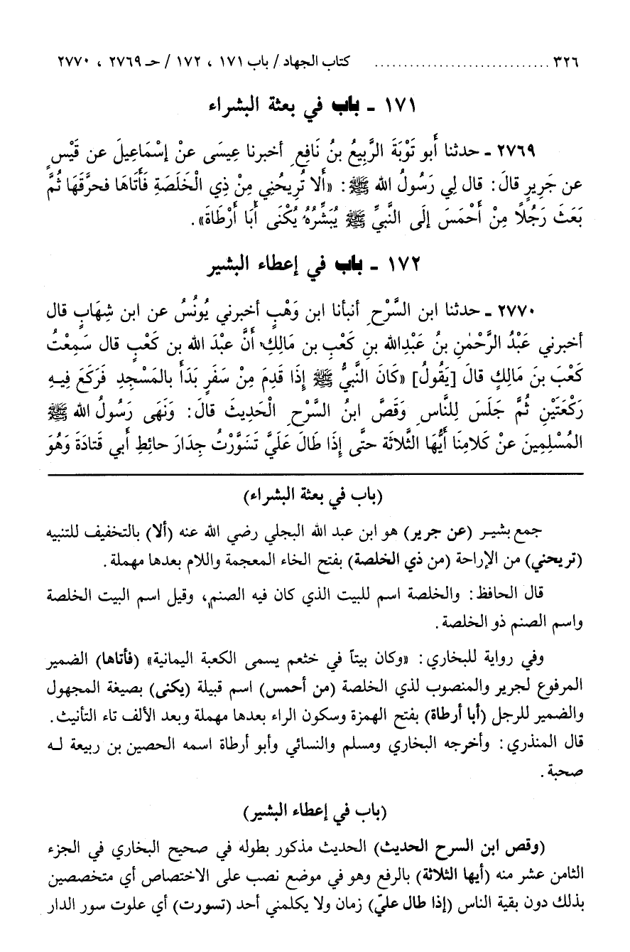 253 - (بَاب فِي بِعْثَةِ الْبُشَرَاءِ)