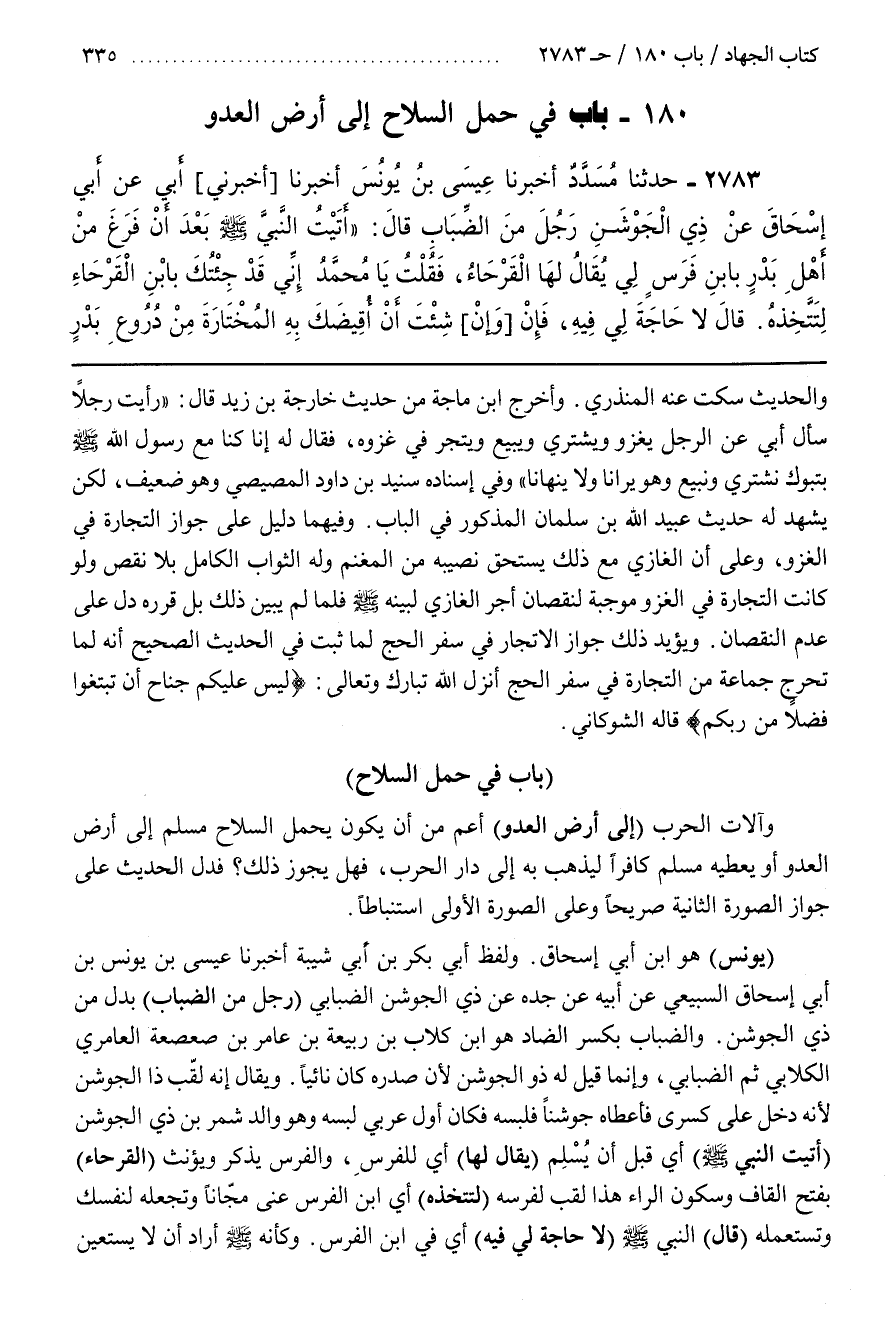 ([2786] بَابٌ فِي حَمْلِ السِّلَاحِ وَآلَاتِ الْحَرْبِ)