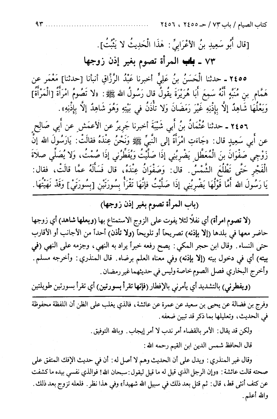 74 - (بَاب الْمَرْأَةِ تَصُومُ بِغَيْرِ إِذْنِ زَوْجِهَا)