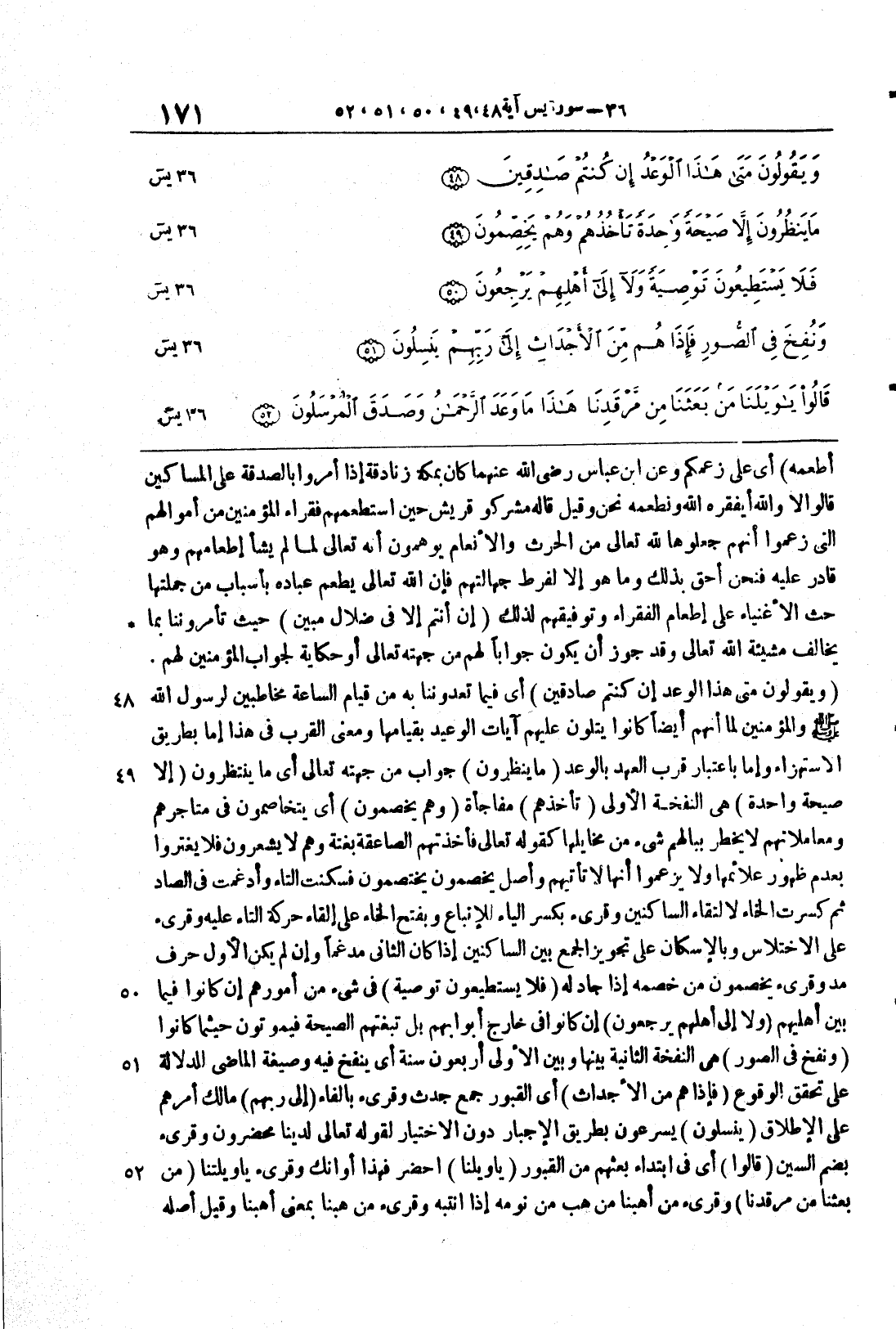 {فَلاَ يَسْتَطِيعُونَ تَوْصِيَةً} في شئ من أمورِهم إنْ كانُوا فيما بين أهليهم {وَلاَ إلى أَهْلِهِمْ يَرْجِعُونَ} إنْ كانُوا في خارج أبوابِهم بل تبغتهم الصَّيحةُ فيموتون حيثُما كانُوا