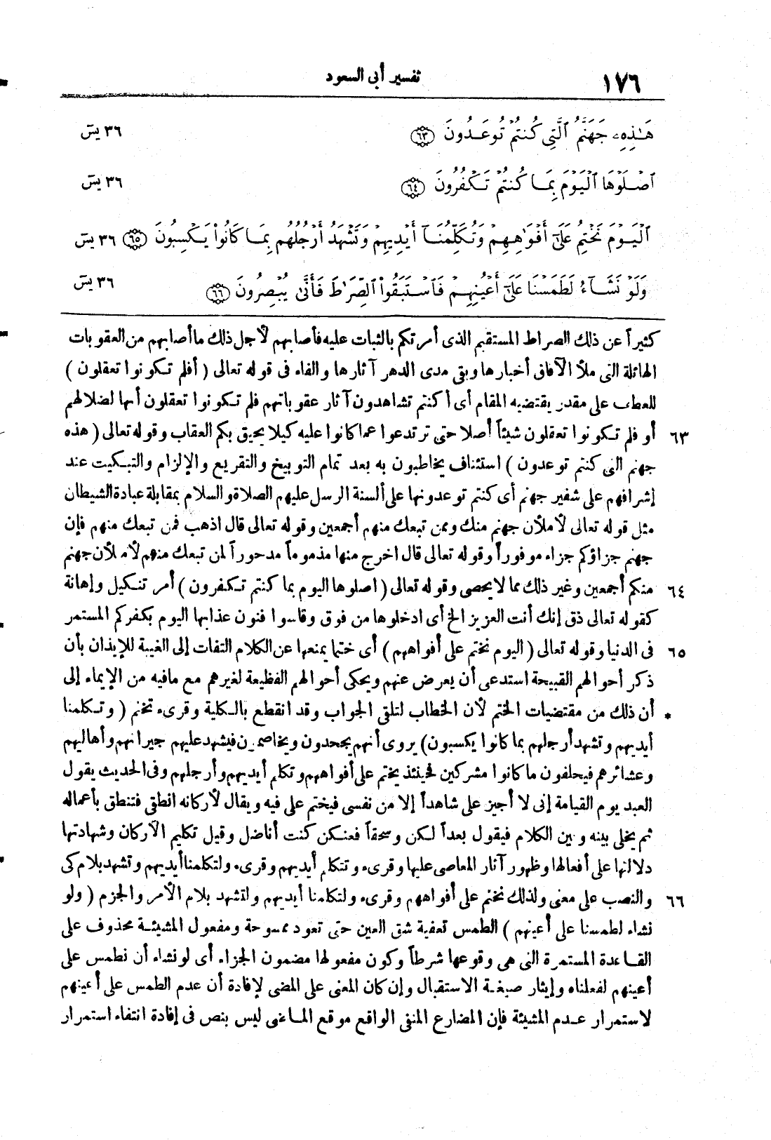 يس 63 66 كثيراً عن ذلك الصِّراطِ المستقيم الذي أمرتُكم بالثَّباتِ عليه فأصابهم لأجلِ ذلك ما أصابَهم من العُقوبات الهائلةِ التي ملأ الآفاقَ أخبارُها وبقي مدى الدَّهرِ آثارُها والفاءُ في قوله تعالى {أَفَلَمْ تَكُونُواْ تَعْقِلُونَ} للعطفِ على مقدرٍ يقتضيهِ المقامُ أي أكنتُم تشاهدونَ آثارَ عقوباتِهم فلم تكونوا تعقلون أنَّها لضُلاَّلهِم أو فلم تكونُوا تعقلون شيئاً أصلاً حتَّى ترتدعُوا عمَّا كانُوا عليه كيلا يحيقَ بكم العقابُ وقولُه تعالَى