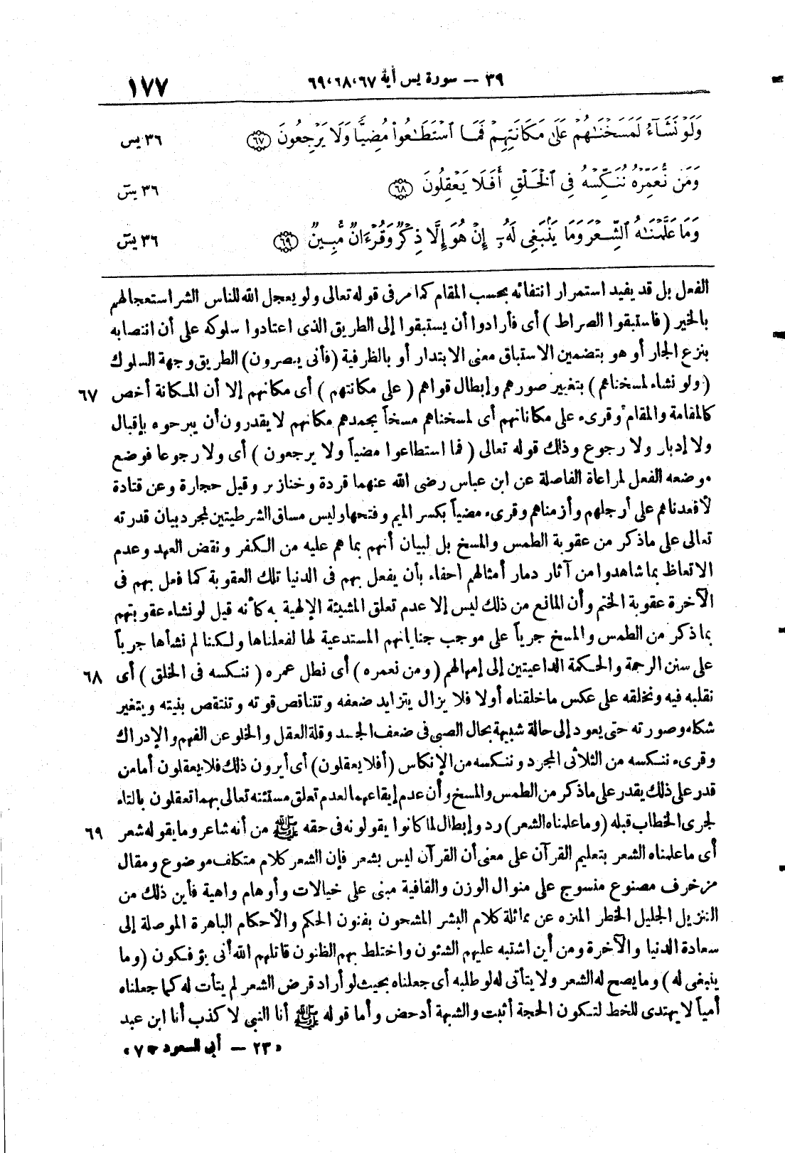 يس 67 69 الفعل بل قد يفيد استمرار انتفائه بحسب المقام كما مرَّ في قوله تعالى وَلَوْ يُعَجّلُ الله لِلنَّاسِ الشر استعجالهم بالخير {فاستبقوا الصراط} أي فأرادوا أنْ يستبقُوا إلى الطَّريقِ الذي اعتادُوا سلوكَه على أنَّ انتصابه بنزع الجارِّ أو هو بتضمين الاستباقِ معنى الابتدارِ أو بالظَّرفيةِ {فأنى يُبْصِرُونَ} الطَّريقَ وجهة السلوك