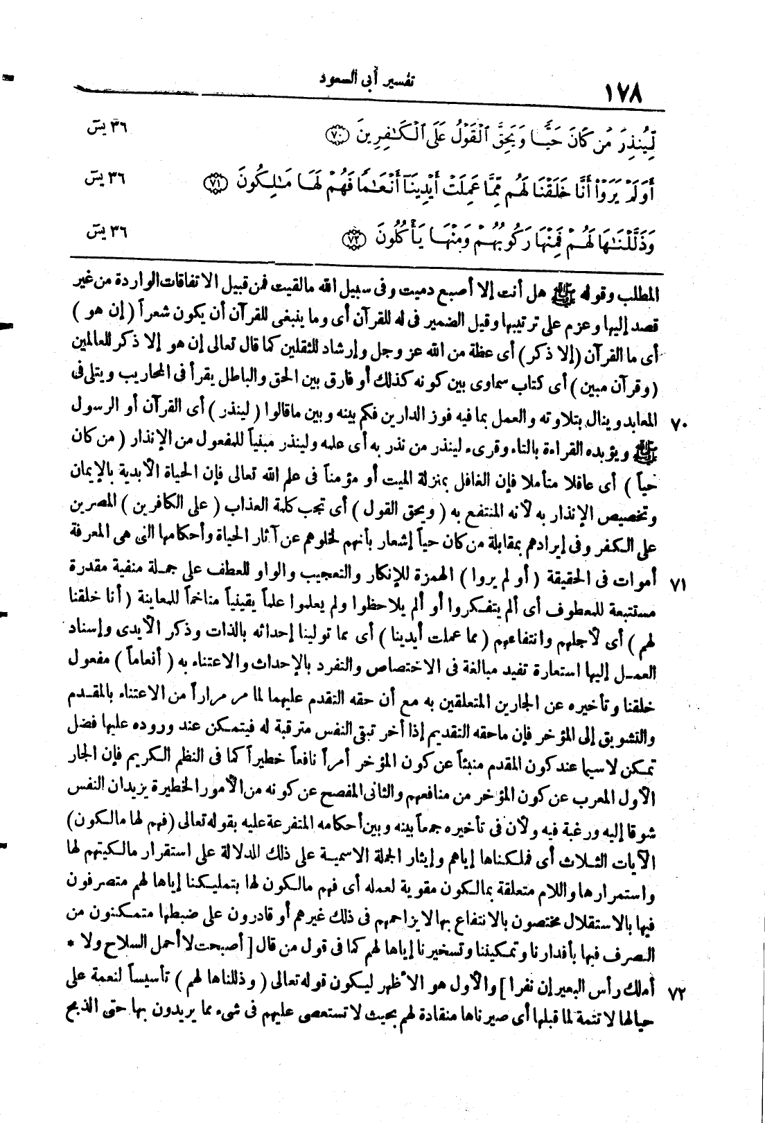 يس 70 72 المطلب وقوله صلى الله عليه وسلم هل أنتِ إلا أصبعٌ دميتِ وفي سبيل الله ما لقيتِ فمنْ قبيلِ الاتفِّاقاتِ الواردةِ من غير قصدٍ إليها وعزمٍ على ترتيبها وقيل الضَّميرُ في له للقُرآنِ أي وما ينبغي للقُرآنِ أنْ يكونَ شِعراً {إِنْ هُوَ} أي مَا القرآن {إِلاَّ ذِكْرٌ} أي عظةٌ من الله عز وجل وإرشادٌ للثَّقلين كما قال تعالى إِنْ هُوَ إِلاَّ ذِكْرٌ للعالمين {وَقُرْآنٌ مُّبِين} أي كتابٌ سماويٌّ بيِّنٌ كونه كذلك أو فارقٍ بين الحقِّ والباطلِ يُقرأ في المحاريبِ ويُتلى في المعابدِ ويُنال بتلاوتِه والعملِ بما فيه فوزُ الدَّارينِ فكم بينَهُ وبينَ ما قالُوا