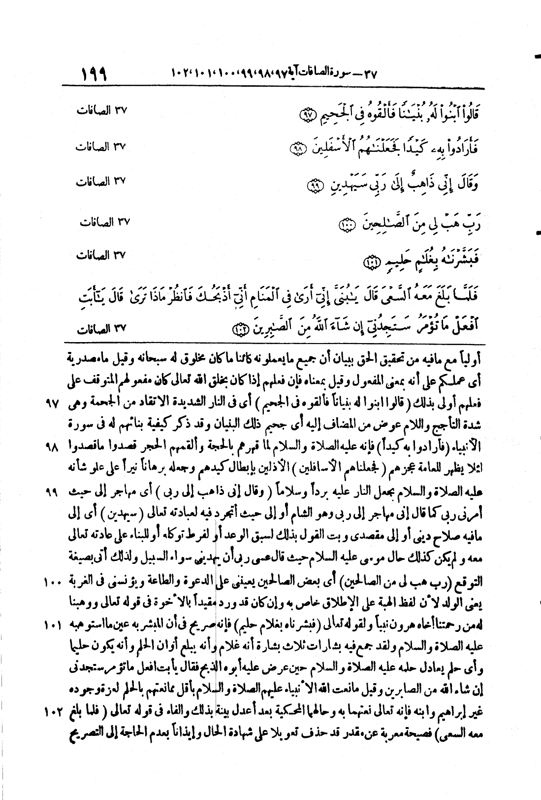 الصافات 97 102 أوليًّا مع ما فيه من تحقيقِ الحقِّ ببيانِ أنَّ جميعَ ما يعملونَهُ كائناً ما كان مخلوقٌ له سبحانه وقيل ما مصدريةٌ أي عملَكم على أنَّه بمعنى المفعولِ وقيل بمعناه فإنَّ فعلَهم إذا كان بخلقِ اللَّهِ تعالى كان مفعولهم المتوقِّفُ على فعلهم أولى بذلك
