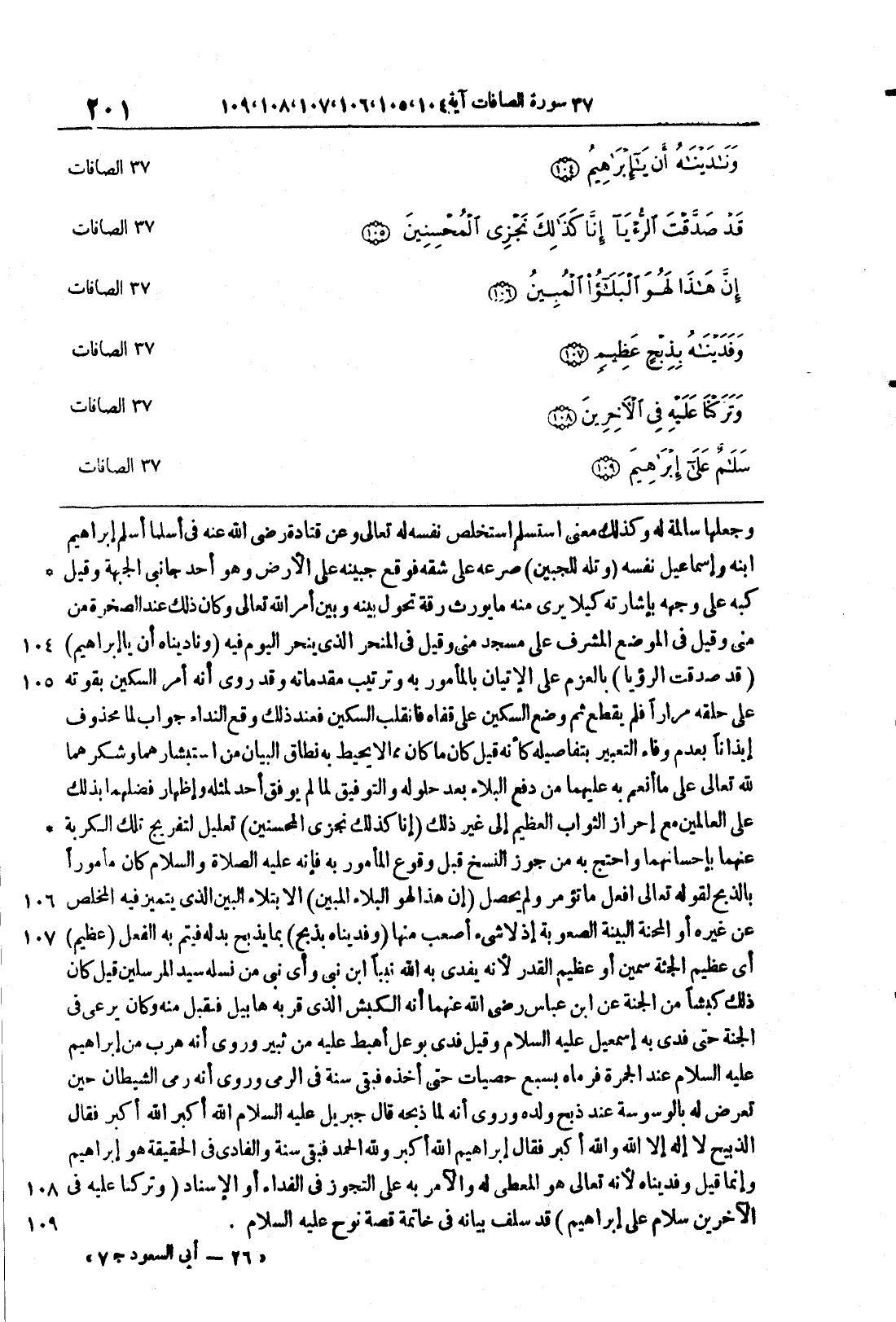 الصافات 104 109 وجعلها سالمةً له وكذلك معنى استسلَم استخلصَ نفسَه له تعالى وعن قتادة رضى الله عنه في أسلما أسلَمَ إبراهيمُ ابنَه وإسماعيلُ نفَسه {وَتَلَّهُ لِلْجَبِينِ} صرعَه على شقِّه فوقع جبينُه على الأرض وهو أحدُ جانبَيْ الجبهةِ وقيل كبَّه على وجههِ بإشارتهِ كيلا يرى منه ما يُورِث رقَّةً تحولُ بينه وبين أمرِ الله تعالى وكان ذلك عند الصَّخرةِ من مِنَى وقيل في الموضعِ المُشرف على مسجدِ مِنَى وقيل في المنحرِ الذي يُنحر اليوم فيه