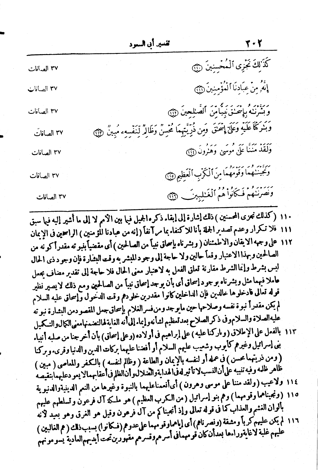 110 - 116 {كَذَلِكَ نَجْزِى المحسنين} ذلك إشارةٌ إلى إبقاءِ ذكره الجميل فيما بين الأممِ لا إلى ما أُشير إليه فيما سبق فلا تكرارَ وعدم تصديرِ الجملةِ بإنا للاكتفاءِ بما مرَّ آنِفاً