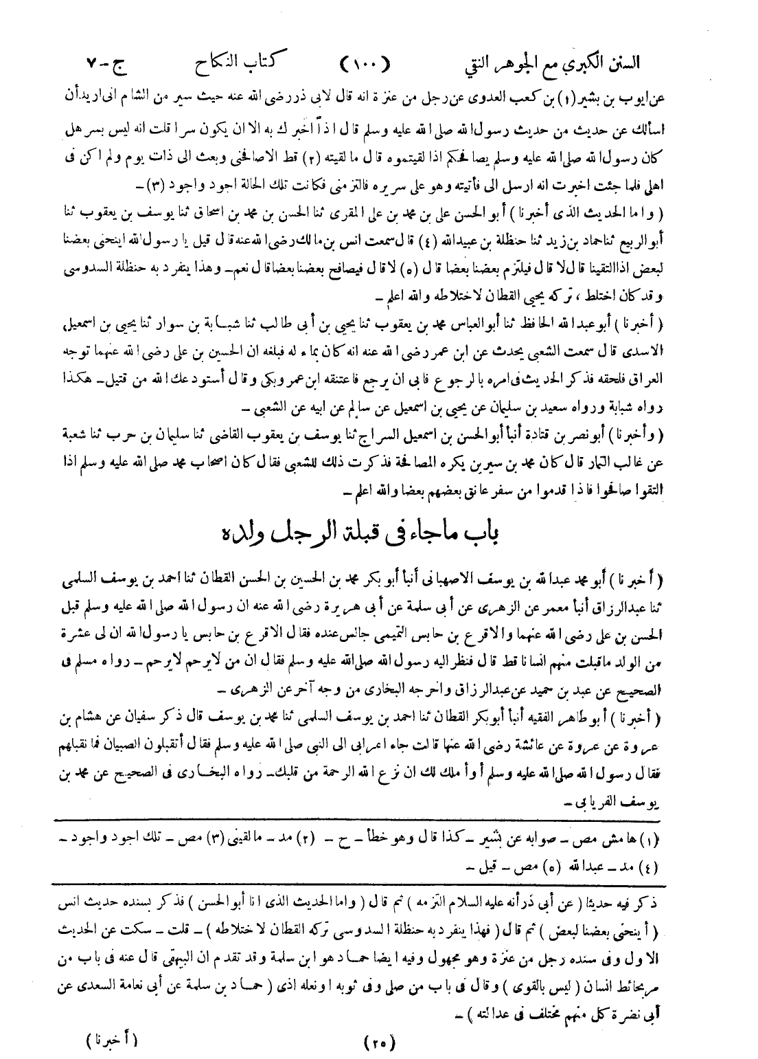 ذكر فيه حديثا (عن أبى ذر أنه عليه السلام التزمه) ثم قال (واما الحديث الذى انا أبو الحسن) فذكر بسنده حديث انس (أينحني بعضنا لبعض) ثم قال (فهذا ينفرد به حنظلة السدوسى تركه القطان لاختلاطه) - قلت - سكت عن الحديث الاول وفي سنده رجل من عنزة وهو مجهول وفيه ايضا حماد هو ابن سلمة وقد تقدم ان البيهقى قال عنه في باب من مر بحائط انسان (ليس بالقوى) وقال في باب من صلى وفي ثوبه أو نعله اذى (حماد بن سلمة عن أبى نعامة السعدى عن أبى نضرة كل منهم مختلف في عدالته) -