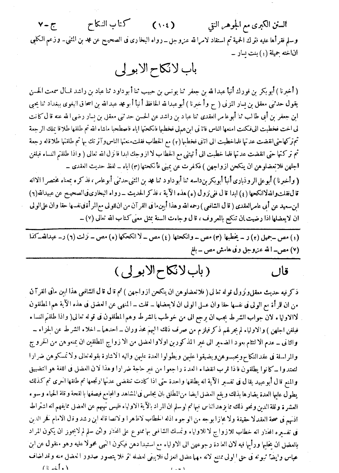 ذكر فيه حديث معقل ونزول قوله تعالى (فلا تعضلوهن ان ينكحن ازواجهن) ثم قال قال الشافعي هذا ابين ما في القرآن من ان للمرأة مع الولى في نفسها حقا وان على الولى ان لا يعضلها - قلت - المنهى عن العضل في هذه الآية هم المطلقون لا الاولياء لان جواب الشرط يجب ان يرجع إلى من خوطب بالشرط وهم المطلقون في قوله تعالى (وإذا طلقتم النساء فبلغن اجلهن) والاولياء لم يجر لهم ذكر فيلزم من صرف ذلك إليهم محذوران - احدهما - اخلاء الشرط عن الجزاء - والثانى - عدم الالتئام بعود الضمير إلى غير المذكورين اولا والعضل من الازواج المطلقين ان يمنعوهن من الخروج والمراسلة في عقد النكاح ويحبسوهن ويضيقوا عليهن ويطولوا العدة عليهن واليه الاشارة بقوله تعالى ولا تمسكوهن ضرارا لتعتدوا - كانوا يطلقون فإذا قرب انقضاء العدة راجعوا من غير حاجة ضرارا وهذا لان العضل في اللغة هو التضييق والمنع قال أبو عبيد يقال في تفسير الآية انه يطلقها واحدة حتى إذا كادت تنقضي عدتها ارتجعها ثم طلقها اخرى ثم كذلك يطول عليها العدة يضارها بذلك ويقع العضل ايضا من المطلق بان يجلس في المشاهد والمجامع فيصفها بالقحة وقلة الحياء وسوء العشرة وقلة الدين ونحو ذلك مما يزهد الناس فيها ثم لو سلم ان المراد بالآية الاولياء فليس نهيهم عن العضل مما يفهم انه اشتراط اذنهم في صحة العقد لا حقيقة ولا مجازا بوجه من الوجوه إذ له الخطاب لا ظاهرا ولا نصاقا له ابن رشد وقال الامام فخر الدين في تفسيره المختار انه خطاب للازواج لا للاولياء وتمسك الشافعي بها ممنوع على المختار ولئن سلم لم لا يجوز ان يكون المراد بالعضل ان يخليها ورأيها فيه لان العادة رجوعهن إلى الاولياء مع استبدادهن فيكون النهى محمولا عليه وهو منقول عن ابن عباس وايضا ثبوته في حق الولى ممتنع لانه مهما عضل انعزل فلا يبقى لعضله اثر فلا يتصور صدور العضل منه وقد اضاف