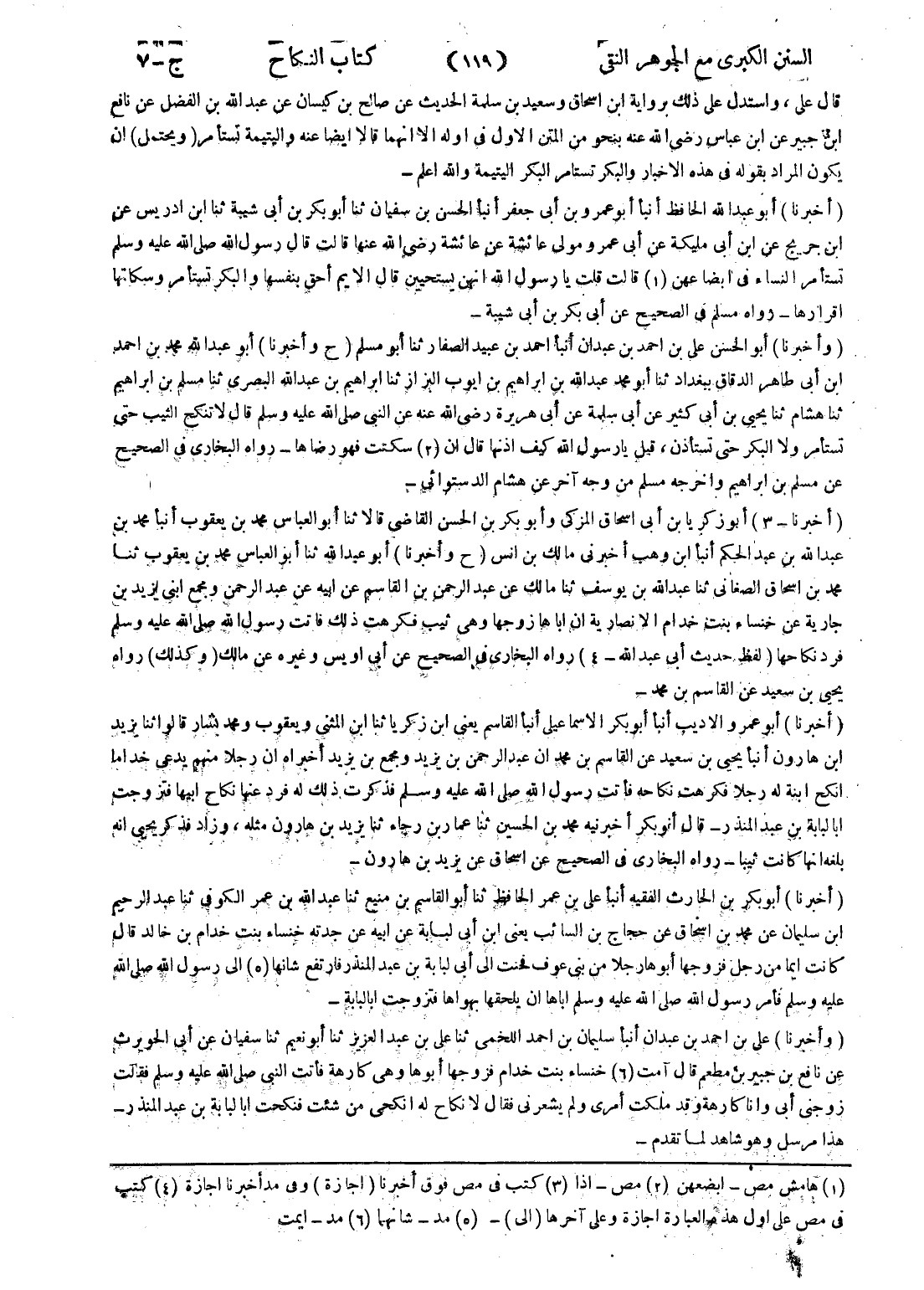 (1) هامش مص - ابضعهن (2) مص - إذا (3) كتب في مص فوق أخبرنا (اجازة) وفى مد أخبرنا اجازة (4) كتب في مص على اول هذه العبارة اجازة وعلى آخرها (إلى) (5) مد - شانهما (6) مد - ايمت (*)