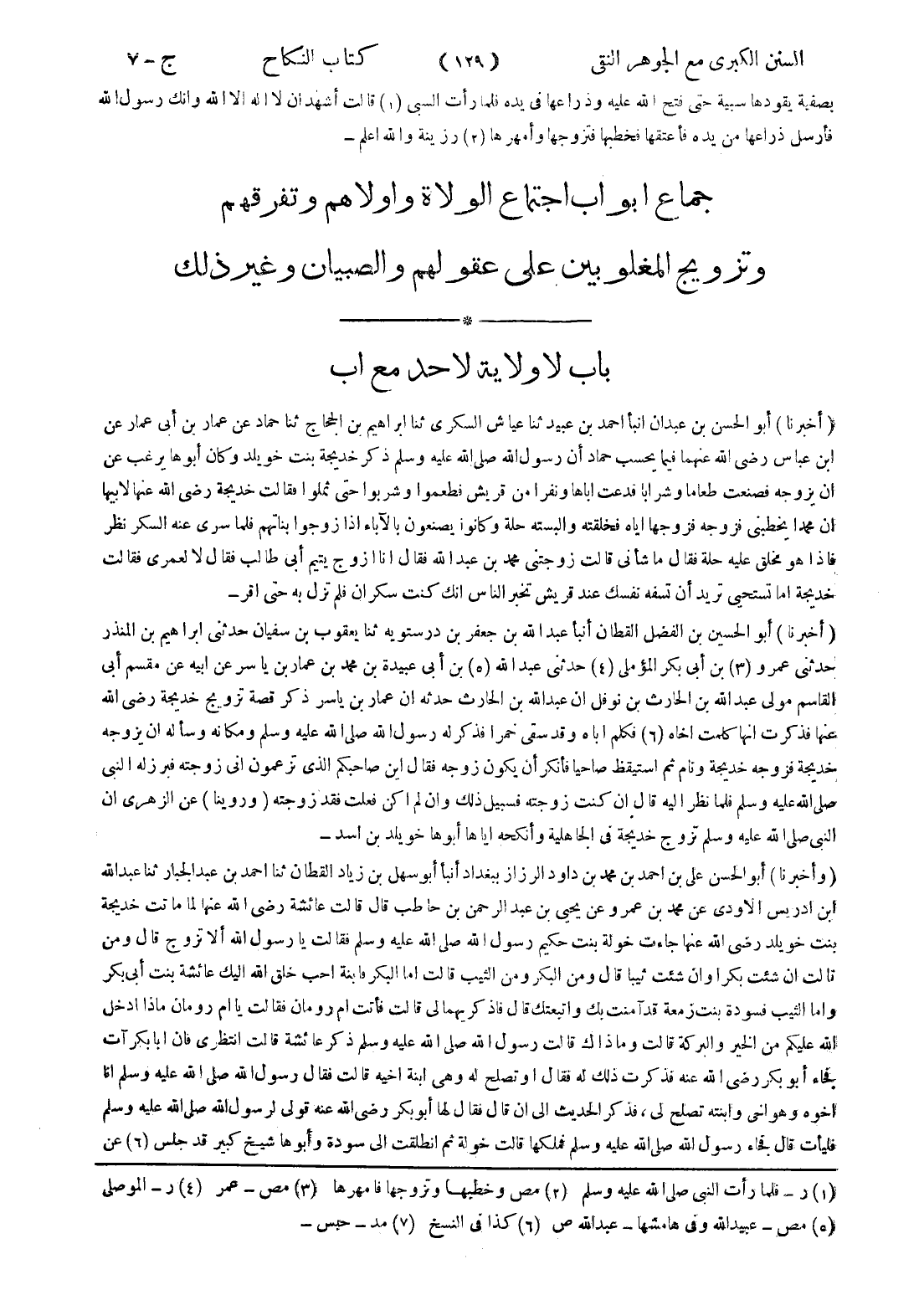(1) ر - فلما رأت النبي صلى الله عليه وسلم (2) مص وخطبها وتزوجها فامهرها (3) مص - عمر (4) ر - الموصلي (5) مص - عبيد الله وفى هامشها - عبد الله ص (6) كذا في النسخ (7) مد - حبس -