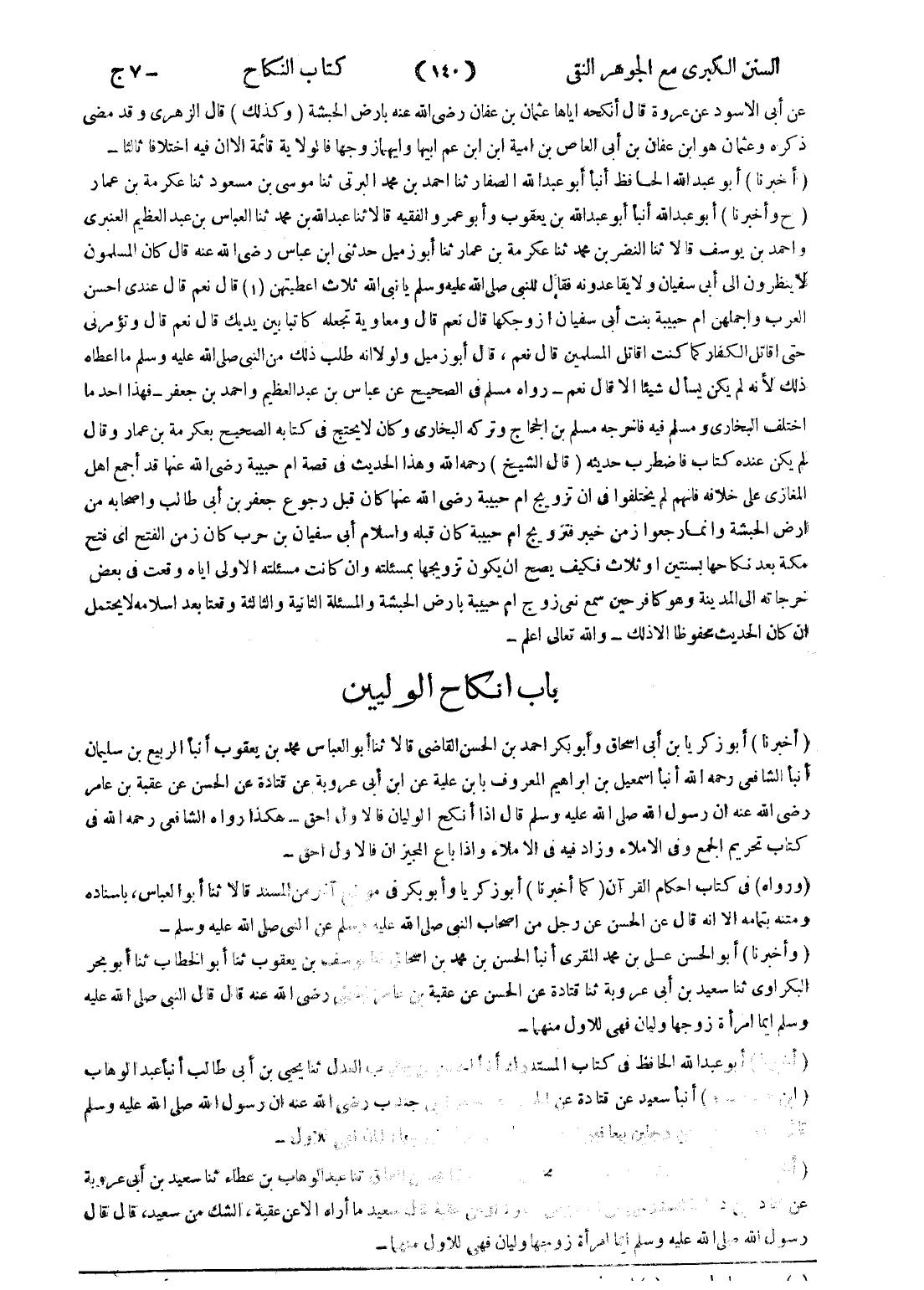 - (وأخبرنا) أبو الحسن على بن محمد المقرى أنبأ الحسن بن محمد بن اسحاق ثنا يوسف بن يعقوب ثنا أبو الخطاب ثنا أبو بحر البكراوى ثنا سعيد بن أبى عروبة ثنا قتادة عن الحسن عن عقبة بن عامر الجهنى رضى الله عنه قال قال النبي صلى الله عليه وسلم ايما امرأة زوجها وليان فهى للاول منهما