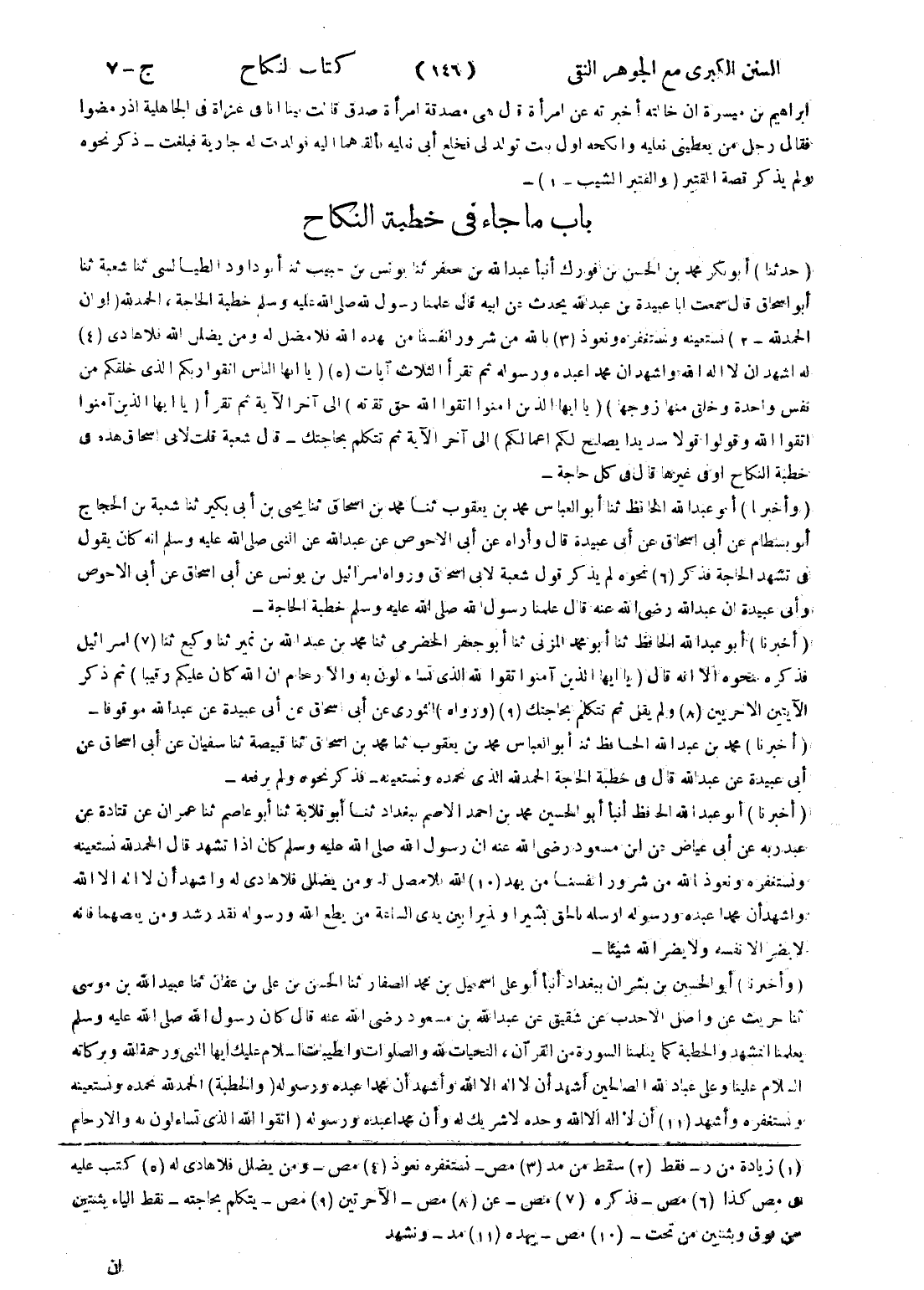 (1) زيادة من ر - فقط (2) سقط من مد (3) مص - نستغفره نعوذ (4) مص - ومن يضلل فلا هادى له (5) كتب عليه في مص كذا (6) مص - فذكره (7) مص - عن (8) مص - الآخرتين (9) مص - يتكلم بحاجته - نقط الياء بثنتين من فوق وبثنتين من تحت - (10) مص - يهده (11) مد - ونشهد (*)