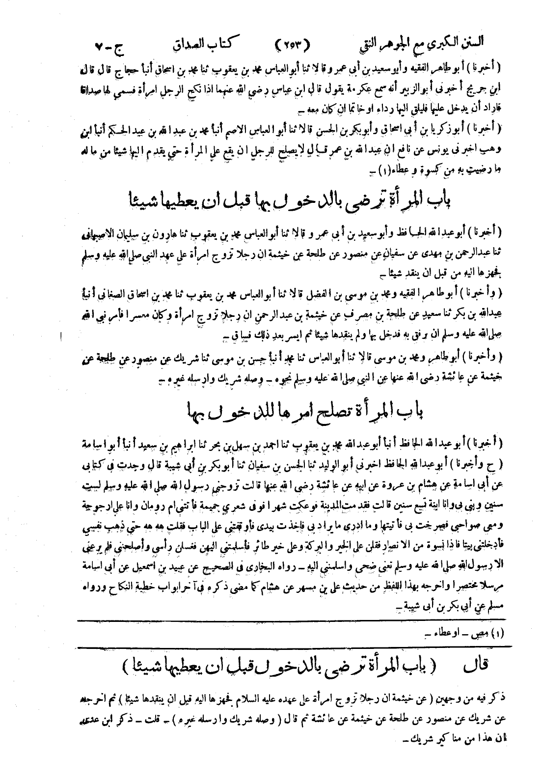 ذكر فيه من وجهين (عن خيثمة ان رجلا تزوج امرأة على عهده عليه السلام فجهزها إليه قيل ان ينقدها شيئا) ثم اخرجه عن شريك عن منصور عن طلحة عن خيثمة عن عائشة ثم قال (وصله شريك وارسله غيره) - قلت - ذكر ابن عدى ان هذا من مناكير شريك -