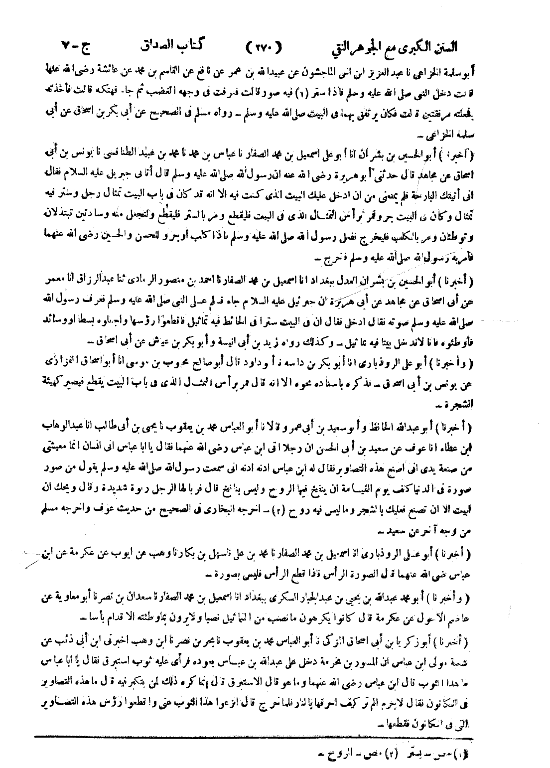 - (أخبرنا) أبو على الروذبارى انا اسمعيل بن محمد الصفار نا محمد بن على نا سهل بن بكار نا وهب عن ايوب عن عكرمة عن ابن عباس رضى الله عنهما قال الصورة الرأس فإذا قطع الرأس فليس بصورة