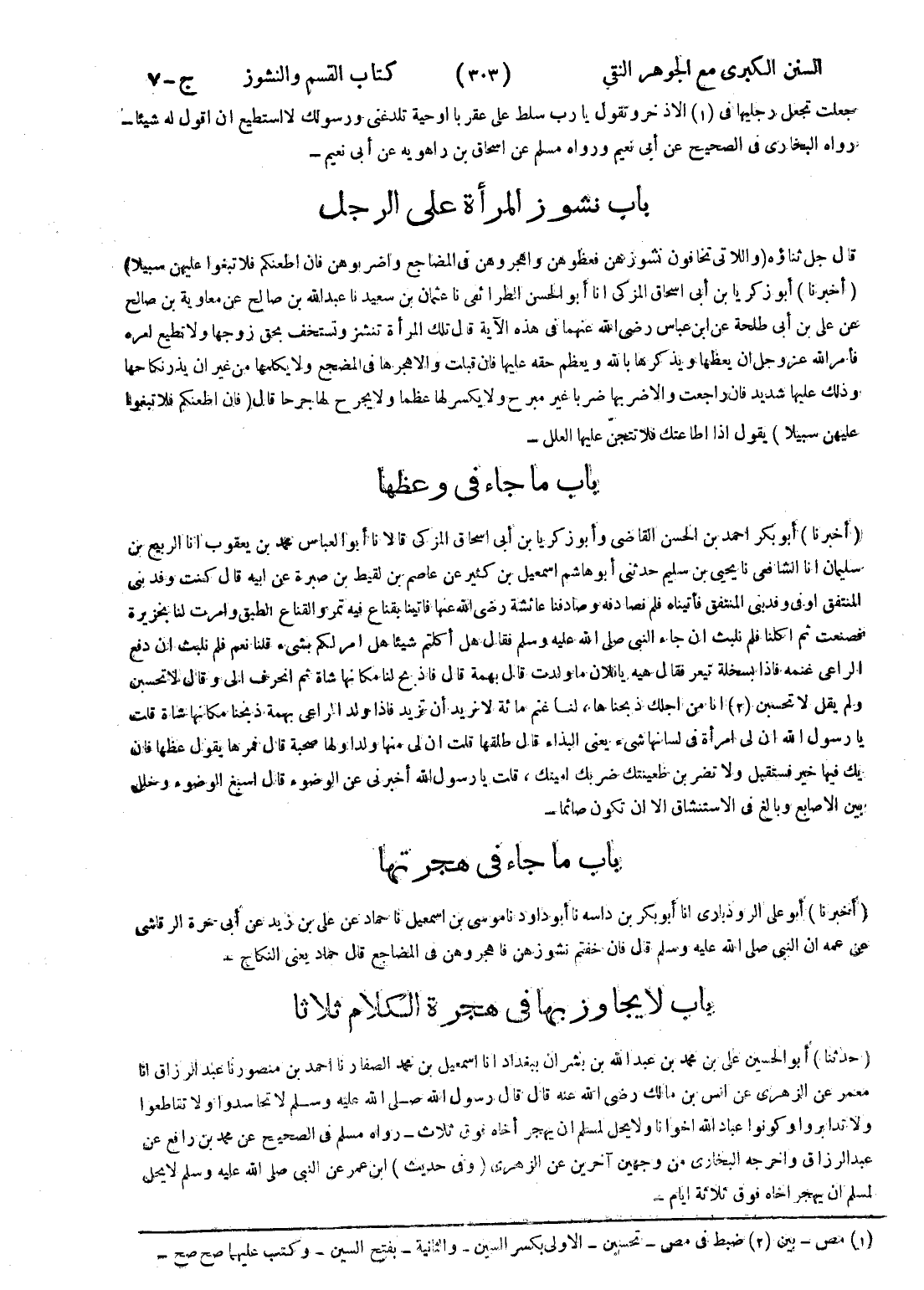 (أخبرنا) أبو على الروذبارى انا أبو بكر بن داسه نا أبو داود نا موسى بن اسمعيل نا حماد عن على بن زيد عن أبى حرة الرقاشى عن عمه ان النبي صلى الله عليه وسلم قال فان خفتم نشوزهن فاهجروهن في المضاجع قال حماد يعنى النكاح