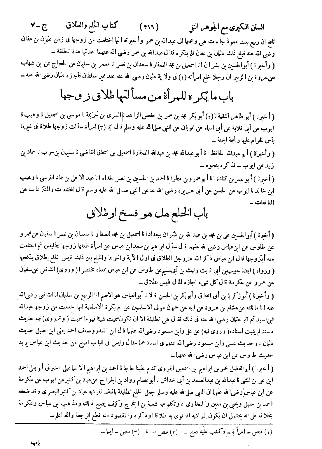 - (وأخبرنا) أبو الحسين بن بشران انا اسمعيل بن محمد الصفار نا سعدان بن نصر نا معمر بن سليمان عن الحجاج عن ابن شهاب عن عروة بن الزبير ان رجلا خلع امرأته (1) في ولاية عثمان رضى الله عنه عند غير سلطان فأجازه عثمان رضى الله عنه