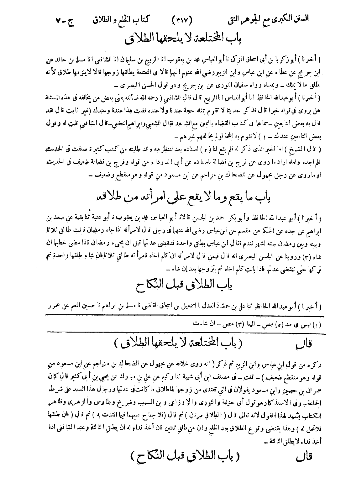 قال (باب المختلعة لا يلحقها الطلاق) ذكره من قول ابن عباس وابن الزبير ثم ذكر (انه روى خلافه عن مجهو عن الضحاك بن مزاحم عن ابن مسعود من قوله وهو منقطع ضعييف) - قلت - في مصنف ابن أبى شيبة ثنا وكيع عن على بن مبارك عن يحيى بن أبى كثير قال كان عمران بن حصين وابن مسعود يقولان في التى تفتدي من زوجها لها طلاق ما كانت في عدتها ورجال هذا السند على شرط الجماعة - وفي الاستذكار هو قول أبى حنيفة والثوري والاوزاعي وابن المسيب وشريح وطاوس والزهرى وظاهر الكتاب يشهد لهذا القول لانه تعالى قال (الطلاق مرتان) ثم قال (فلا جناح عليهما فيما افتدت به) ثم قال (فان طلقها فلا تحل له) وهذا يقتضى وقوع الطلاق بعد الخلع وان من طلق ثنتين فان أخذ فداء له ان يطلق الثالثة وعند الشافعي إذا أخذ فداء لا يطلق الثالثة -