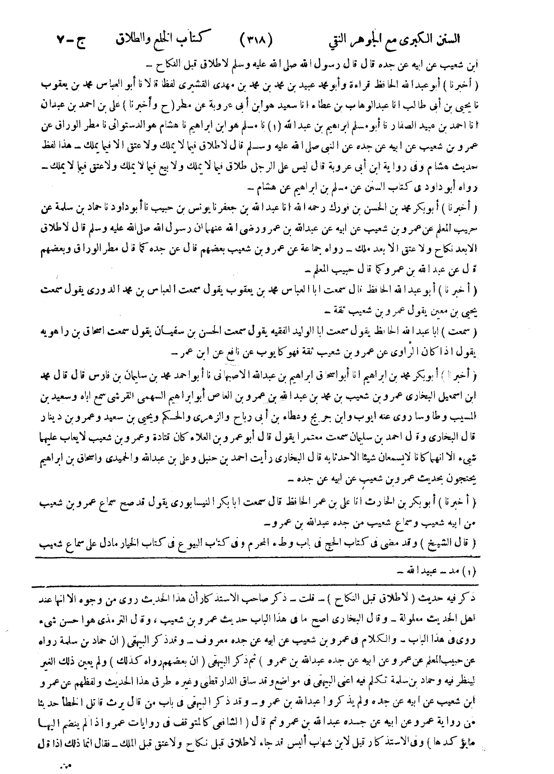 ذكر فيه حديث (لا طلاق قبل النكاح) - قلت - ذكر صاحب الاستذكار أن هذا الحديث روى من وجوه الا انها عند اهل الحديث معلولة وقال البخاري اصح ما في هذا الباب حديث عمرو بن شعيب - وقال الترمذي هوا حسن شئ روى في هذ الباب - والكلام في عمرو بن شعيب عن ابيه عن جده معروف - وقد ذكر البيهقى (ان حماد بن سلمة رواه عن حبيب المعلم عن عمرو عن ابيه عن جده عبد الله بن عمرو) ثم ذكر البيهقى (ان بعضهم رواه كذلك) ولم يعين ذلك الغير لينظر فيه وحماد بن سلمة تكلم فيه اعني البيهقى في مواضع وقد ساق الدارقطني وغيره طرق هذا الحديث ولفظهم عن عمرو ابن شعيب عن ابيه عن جده ولم يذكروا عبد الله بن عمرو وقد ذكر البيهقى في باب من قال يرث قاتل الخطاء حديثا من رواية عمرو عن ابيه عن جده عبد الله بن عمرو ثم قال (الشافعي كالمتوقف في روايات عمرو إذا لم ينضم إليها ما يؤكدها) وفي الاستذكار قيل لابن شهاب أليس فد جاء لا طلاق قبل نكاح ولا عتق قبل الملك - فقال انما ذلك إذا قال