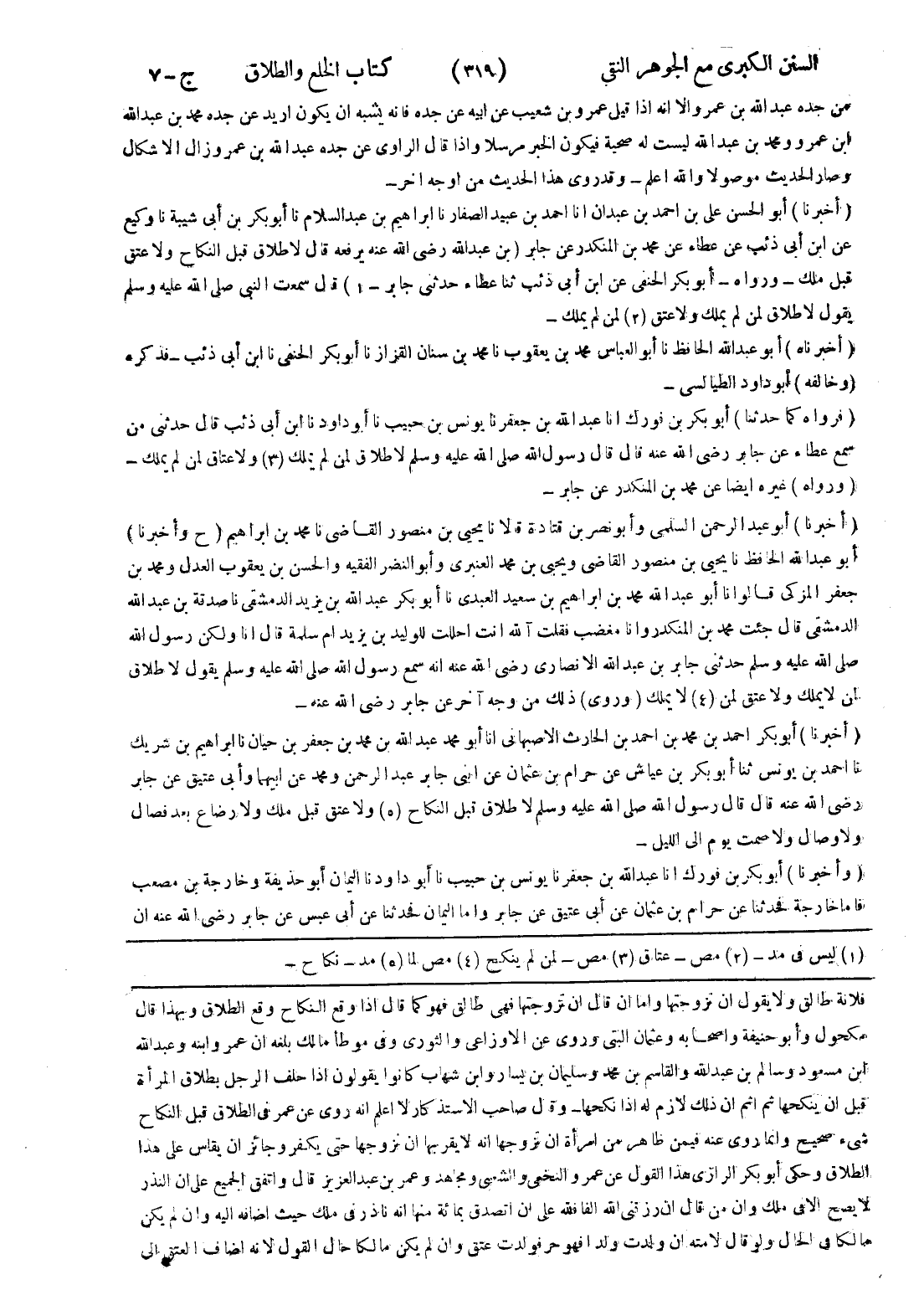 فلانة طالق ولا يقول ان تزوجتها واما ان قال ان تزوجتها فهى طالق فهو كما قال إذا وقع النكاح وقع الطلاق وبهذا قال مكحول وأبو حنيفة واصحابه وعثمان البتى وروى عن الاوزاعي والثوري وفي موطا مالك بلغه ان عمر وابنه وعبد الله ابن مسعود وسالم بن عبد الله والقاسم بن محمد وسليمان بن يسار وابن شهاب كانوا يقولون إذا حلف الرجل بطلاق المرأة قبل ان ينكحها ثم اثم ان ذلك لازم له إذا نكحها - وقال صاحب الاستذكار لا اعلم انه روى عن عمر في الطلاق قبل النكاح شئ صحيح وانما روى عنه فيمن ظاهر من امرأة ان تزوجها انه لا يقربها ان نزوجها حتى يكفر وجائز ان يقاس على هذا الطلاق وحكى أبو بكر الرازي هذا القول عن عمرو النخعي والشعبى ومجاهد وعمر بن عبد العزيز قال واتفق الجميع على ان النذر لا يصح الا في ملك وان من قال ان رزقني الله الفا فلله على ان اتصدق بمائة منها انه ناذر في ملك حيث اضافه إليه وان لم يكن مالكا في الحال ولو قال لامته ان ولدت ولدا فهو حر فولدت عتق وان لم يكن مالكا حال القول لانه اضاف العتق إلى