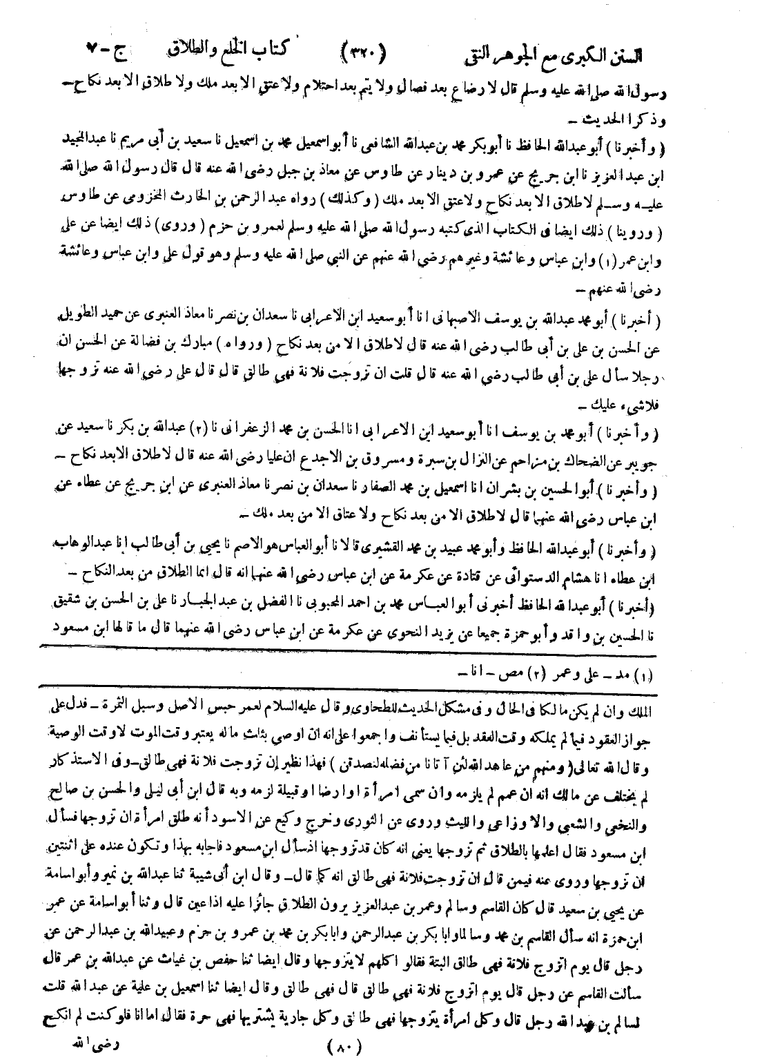 جواز العقود فيما لم يملكه وقت العقد بل فيما يستأنف واجمعوا على انه ان اوصى بثلث ماله يعتبر وقت الموت لا وقت الوصية وقال الله تعالى (ومنهم من عاهد الله لئن آتانا من فضله لنصدقن) فهذا نظير إن تزوجت فلانة فهى طالق - وفى الاستذكار لم يختلف عن مالك انه ان عمم لم يلزمه وان سمى امرأة أو ارضا أو قبيلة لزمه وبه قال ابن أبى ليلى والحسن بن صالح والنخعي والشعبى والاوزاعي والليث وروى عن الثوري وخرج وكيع عن الاسود أنه طلق امرأة ان تزوجها فسأل ابن مسعود فقال اعلمها بالطلاق ثم تزوجها يعنى انه كان قد تزوجها إذ سأل ابن مسعود فاجابه بهذا وتكون عنده على اثنتين ان تزوجها وروى عنه فيمن قال ان تزوجت فلانة فهى طالق انه كما قال - وقال ابن أبى شيبة ثنا عبد الله بن نمير وأبو اسامة عن يحيى بن سعيد قال كان القاسم وسالم وعمر بن عبد العزيز يرون الطلاق جائزا عليه إذا عين قال وثنا أبو اسامة عن عمر ابن حمزة انه سأل القاسم بن محمد وسالما وابا بكر بن عبد الرحمن وابا بكر بن محمد بن عمرو بن حزم وعبيد الله بن عبد الرحمن عن رجل قال يوم اتزوج فلانه فهى طالق البتة فقالوا كلهم لا يتزوجها وقال ايضا ثنا حفص بن غياث عن عبد الله بن عمر قال سألت القاسم عن رجل قال يوم اتزوج فلانة فهى طالق قال فهى طالق وقال ايضا ثنا اسمعيل بن علية عن عبد الله قلت لسالم بن عبد الله رجل قال وكل امرأة يتزوجها فهى طالق وكل جارية يشتريها فهى حرة فقال اما انا فلو كنت لم انكح