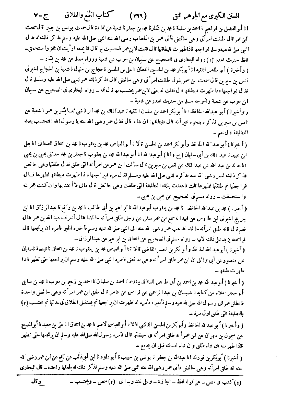 - (أخبرنا) أبو عبد الله الحافظ وأبو بكر بن الحسن القاضى قالا ثنا أبو العباس محمد بن يعقوب نا محمد بن اسحاق نا قبيصة نا سفيان عن منصور عن ابى وائل ان ابن عمر طلق امرأته وهى حائض فأمره النبي صلى الله عليه وسلم ان يراجعها حتى تطهر فإذا طهرت طلقها