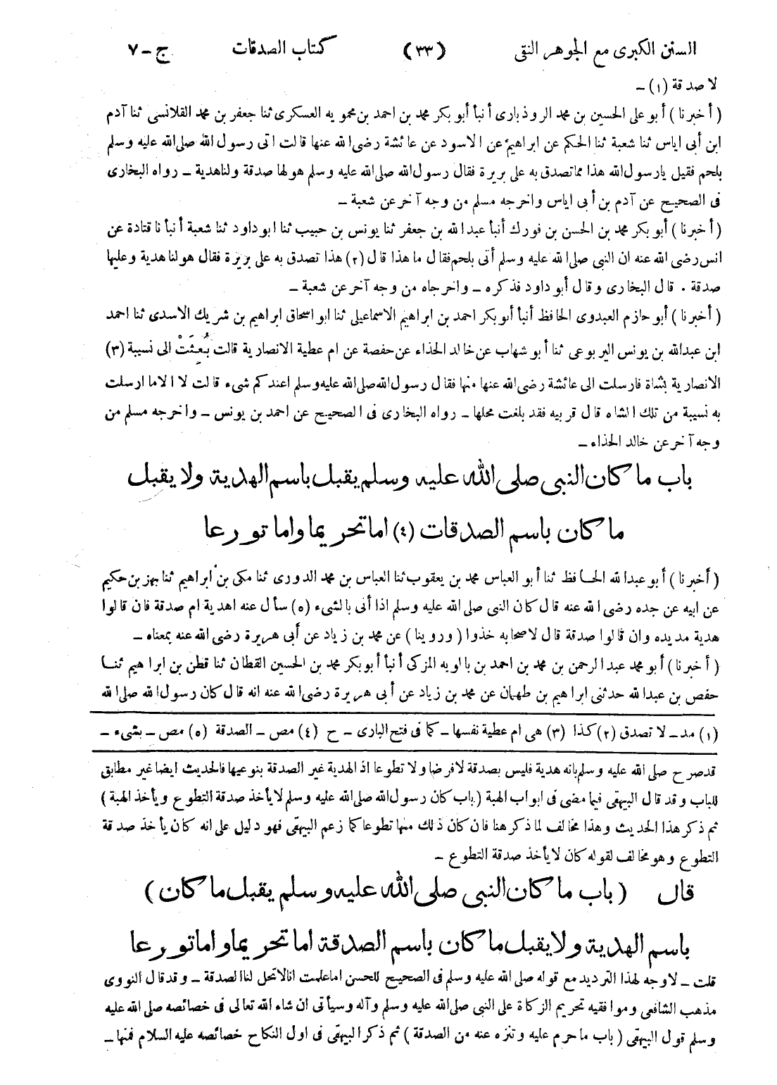قد صرح صلى الله عليه وسلم بانه هدية فليس بصدقة لا فرضا ولا تطوعا إذ الهدية غير الصدقة بنوعيها فالحديث ايضا غير مطابق للباب وقد قال البيهقى فيما مضى في ابواب الهبة (باب كان رسول الله صلى الله عليه وسلم لا يأخذ صدقة التطوع ويأخذ الهبة) ثم ذكر هذا الحديث وهذا مخالف لما ذكر هنا فان كان ذلك منها تطوعا كما زعم البيهقى فهو دليل على انه كان يأخذ صدقة التطوع وهو مخالف لقوله كان لا يأخذ صدقة التطوع - قال (باب ما كان النبي صلى الله عليه وسلم يقبل ما كان) باسم الهدية ولا يقبل ما كان باسم الصدقة اما تحريما واما تورعا