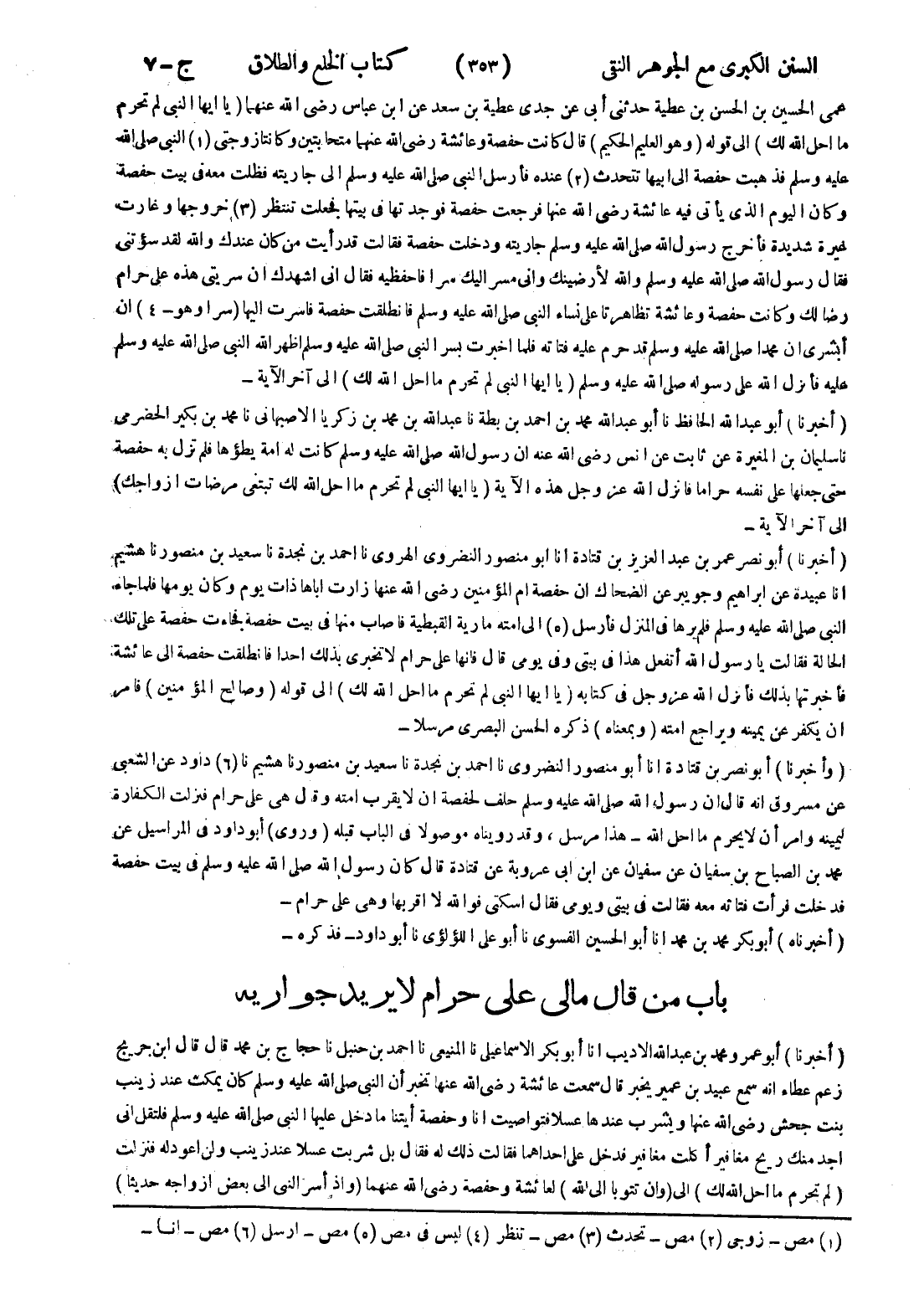- باب من قال مالى على حرام لا يريد جواريه