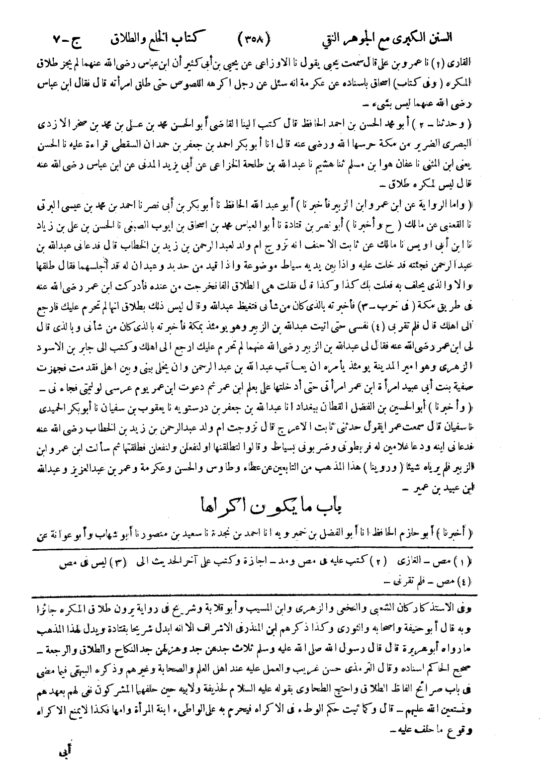 وفى الاستذكار كان الشعبى والنخعي والزهرى وابن المسيب وأبو قلابة وشريح في رواية يرون طلاق المكره جائزا وبه قال أبو حنيفة واصحابه والثوري وكذا ذكرهم ابن المنذر في الاشراف الا انه ابدل شريحا بقتادة ويدل لهذا المذهب ما رواه أبو هريرة قال قال رسول الله صلى الله عليه وسلم ثلاث جدهن جد وهزلهن جد النكاح والطلاق والرجعة - صحيح الحاكم اسناده وقال الترمذي حسن غريب والعمل عليه عند اهل العلم والصحابة وغيرهم وذكره البيهقى فيما مضى في باب صرائح الفاظ الطلاق واحتج الطحاوي بقوله عليه السلام لحذيفة ولابيه حين حلفهما المشركون نفى لهم بعهدهم ونستعين الله عليهم - قال وكما ثبت حكم الوطئ في الاكراه فيحرم به على الواطئ ابنة المرأة وامها فكذا لا يمنع الاكراه وقوع ما حلف عليه -