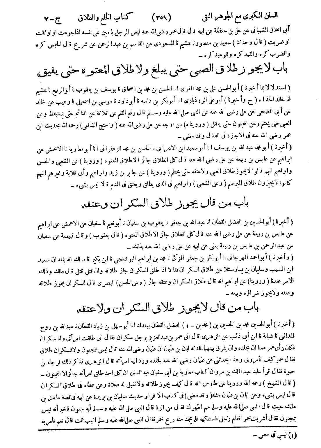 - باب لا يجوز طلاق الصبى حتى يبلغ ولا طلاق المعتوه حتى يفيق (استدلالا بما أخبرنا) أبو الحسن على بن محمد المقرى انا الحسن بن محمد بن اسحاق نا يوسف بن يعقوب نا أبو الربيع نا هشيم انا خالد الحذاء