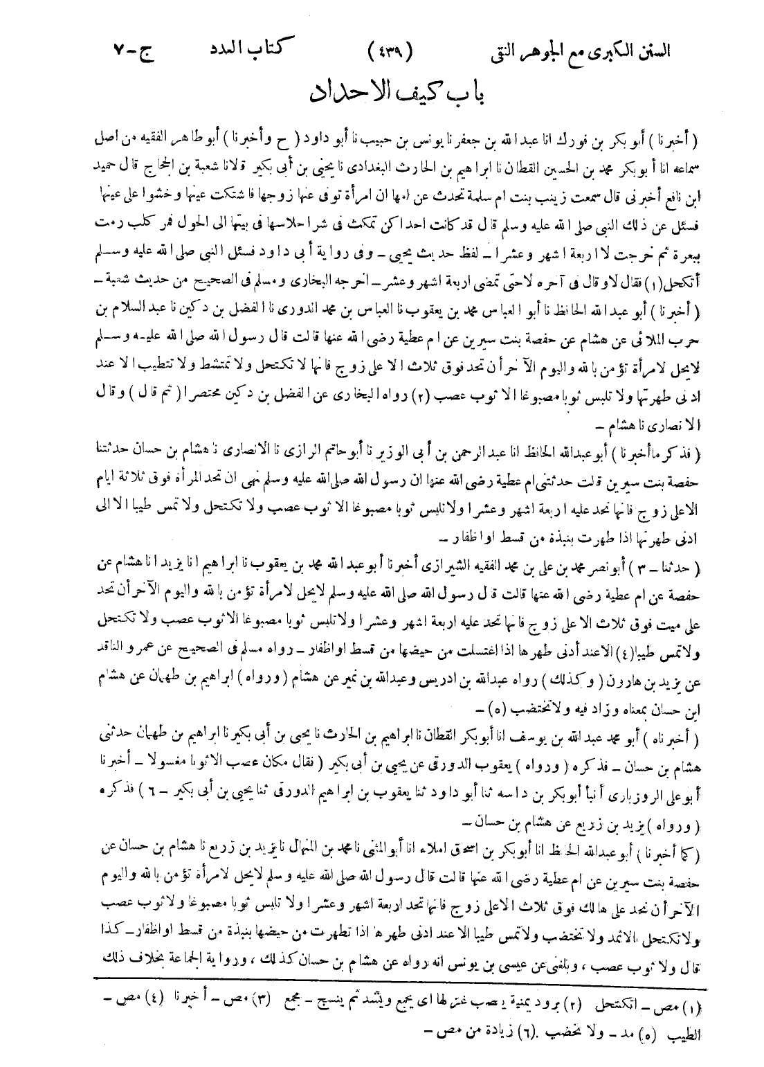 (1) مص - اتكتحل (2) برود يمنية يصب غزلها أي يجمع ويشد ثم ينسج - مجمع (3) مص - أخبرنا (4) مص - الطيب (5) مد - ولا تخضب (6) زيادة من مص - (*)