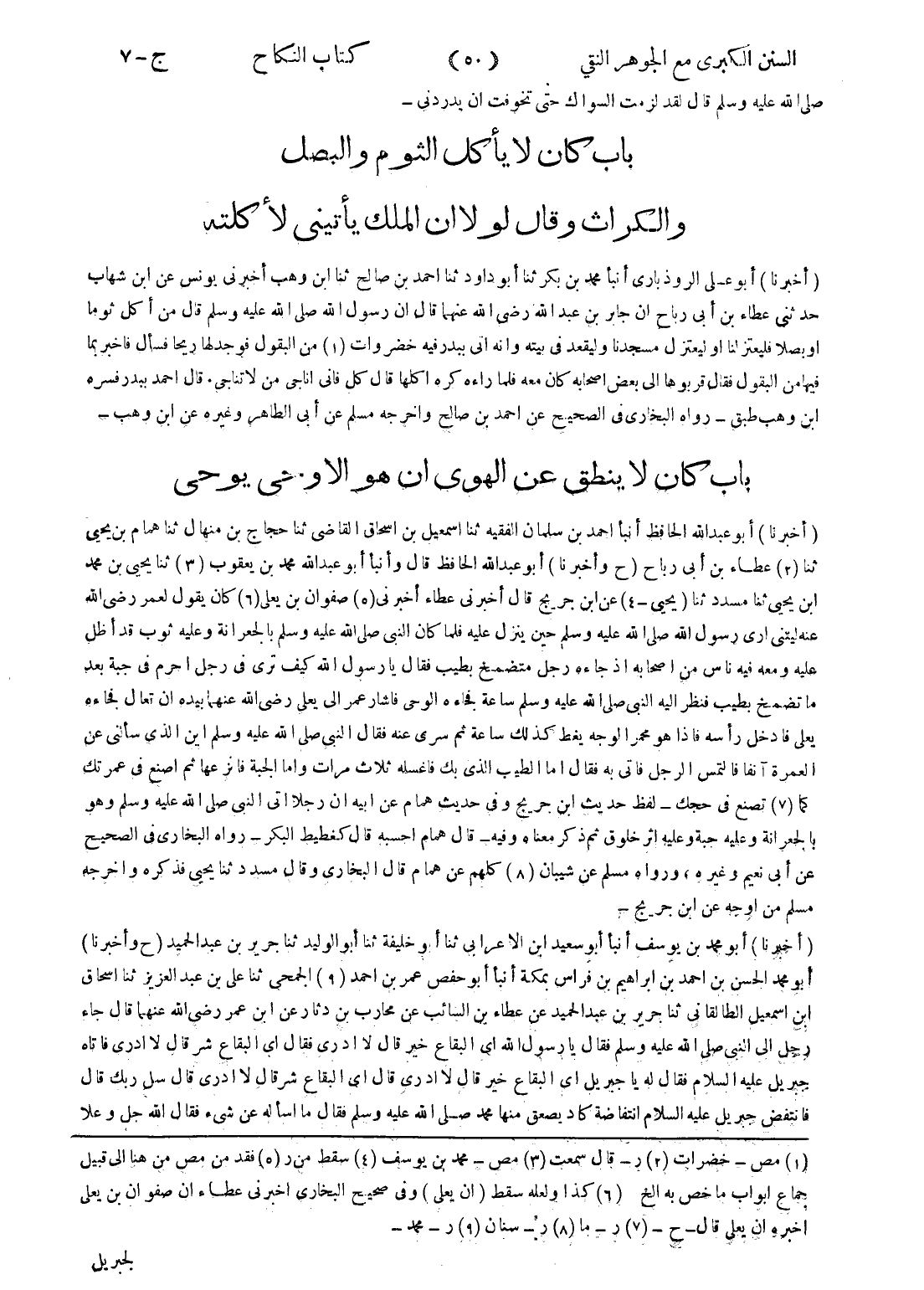 (1) مص - خضرات (2) ر - قال سمعت (3) مص - محمد بن يوسف (4) سقط من ر (5) فقد من مص من هنا إلى قبيل حماع أبواب ما خص به الخ (6) كذاو لعله سقط (ان يعلى) وفى صحيح البخاري اخبرني عطاء ان صفوان بن يعلى اخبره ان يعلى قال - ح - (7) ر - ما (8) ر - سنان (9) ر - محمد (*)