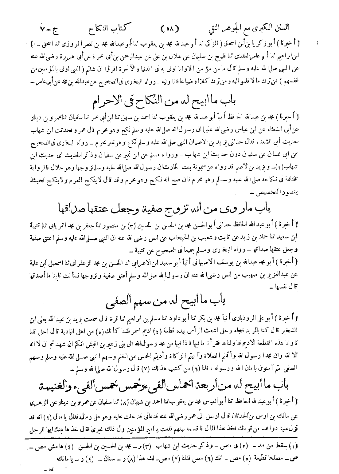 (1) سقط من مد - (2) في مص - وذكر حديث ابن شهاب (3) ر - محمد بن الحسين بن الحسن (4) هامش مص - ص - مصلحا قطيعة (5) مص - انك (6) مص فقلنا (7) مص - لك هذا (8) ر - سنان (9) ر - يا مالك (*)