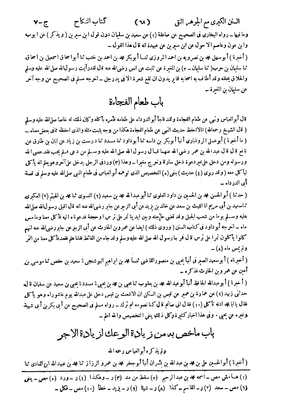 (1) هامش مص - اسمه محمد بن عبد الرحيم (2) سقط من مد (3) ر - وهكذا (4) ر - ورد (5) مص - ينفى (6) مص - سعد (7) ر - القاسم - كذا (8) ر - شيئا (9) ر - يزيد - خطأ (10) مص - فكل -