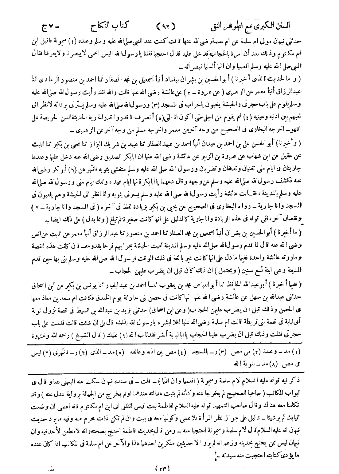 ذكر فيه قوله عليه السلام لام سلمة وميمونة (افعميا وان انتما) - قلت - في سنده نبهان سكت عنه البيهقى هنا وقال في أبواب المكاتب (صاحبا الصحيح لم يخرجا عنه وكأنه لم يثبت عدالته عندهما أو لم يخرج من الجهالة برواية عدل عنه) وقد
