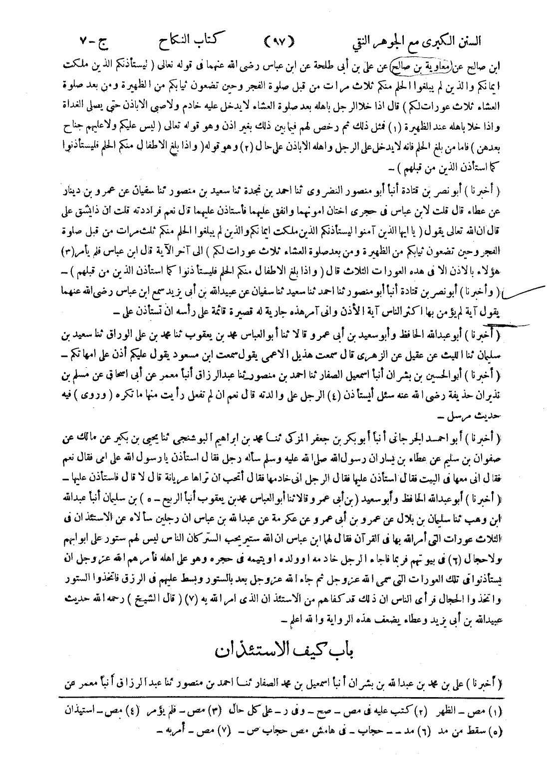 (1) مص - الظهر (2) كتب عليه في مص - صح - وفى ر - على كل حال (3) مص - فلم يؤمر (4) مص - استيذان (5) سقط من مد (6) مد - حجاب - في هامش مص حجاب ص - (7) مص - أمر به (*)