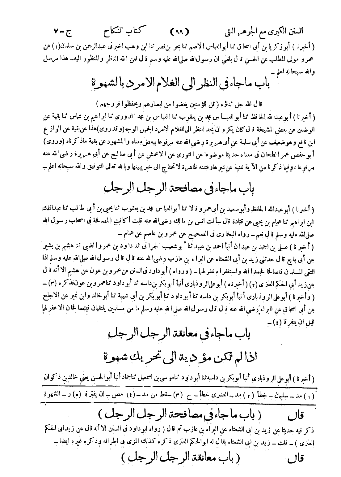 قال (باب ما جاء في مصافحة الرجل الرجل) ذكر فيه حديثا عن زيد بن ابى الشعثاء عن البراء بن عازب ثم قال (رواه أبو داود في السنن الا أنه قال عن زيد ابى الحكم العنزي) - قلت - زيد بن ابى الشعثاء يقال له أبو الحكم العنزي ذكره كذلك المزى في اطرافه وذكره غيره ايضا - قال (باب معانقة الرجل الرجل)